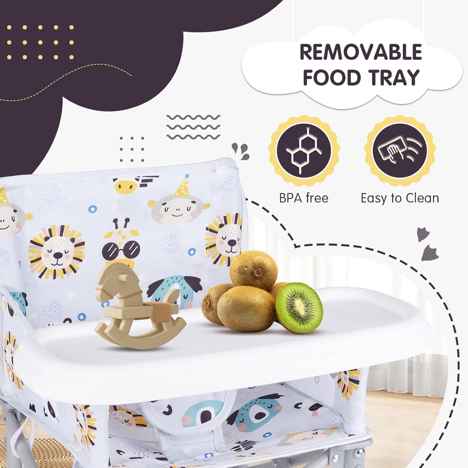 Safety and Durable Baby Chair: Made of durable metal materials ,this booster chair with a built-in child safety belt, ensures toddler is secure while enjoying meals or playtime