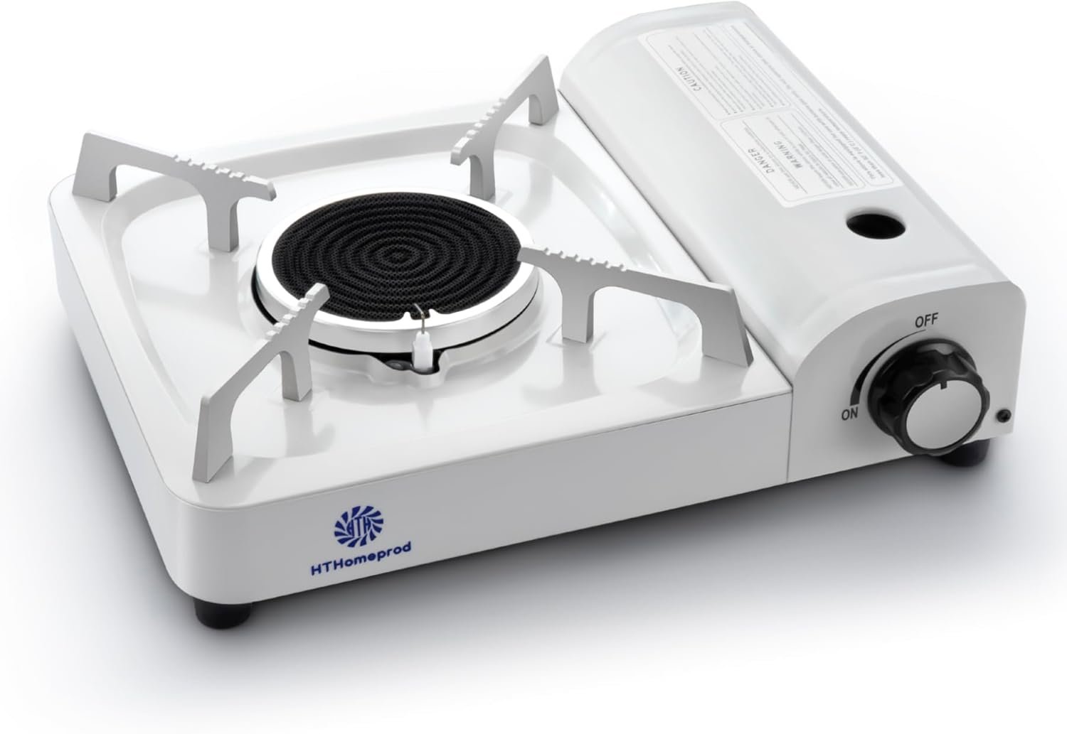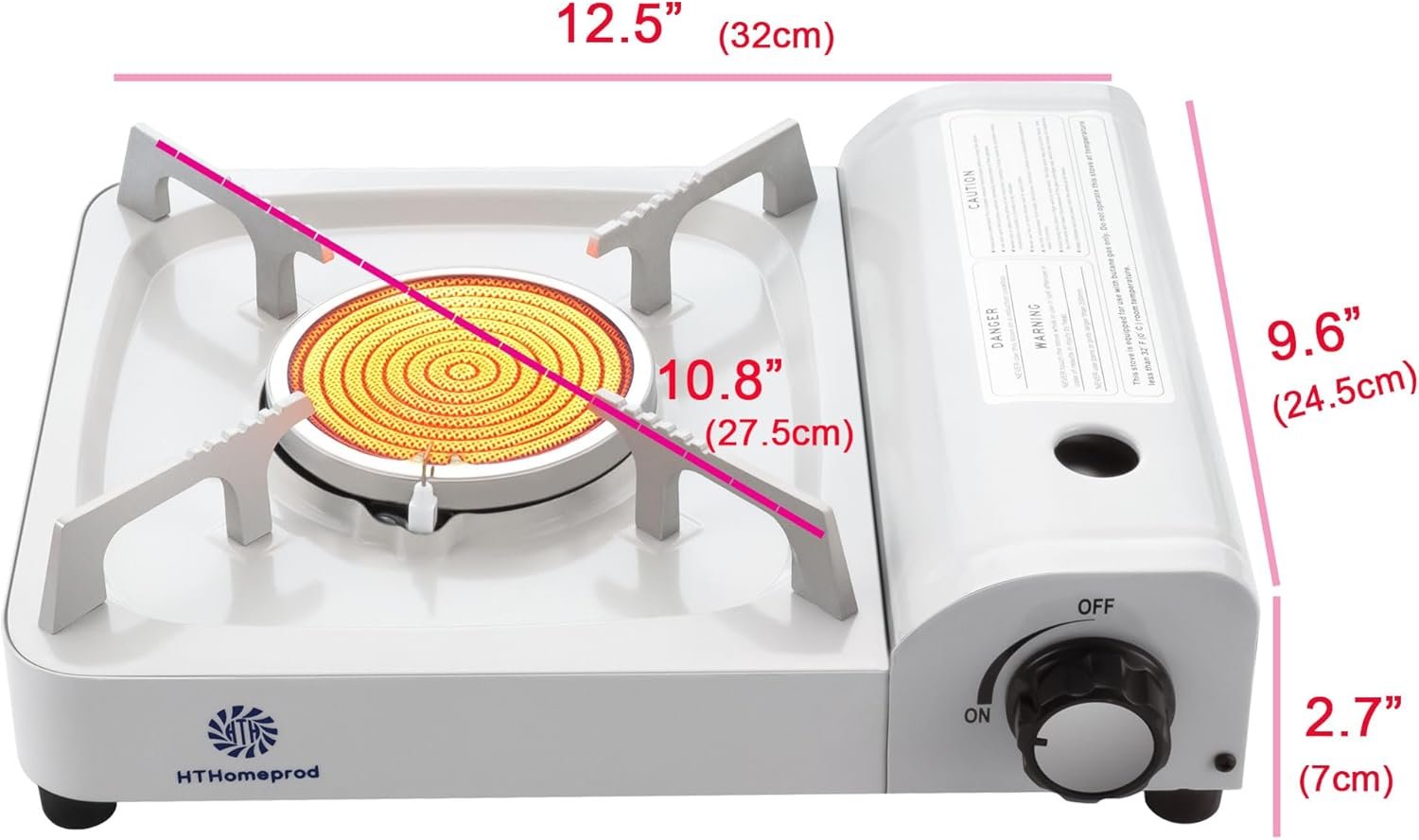 Portable Camping Stove Windproof Infrared Butane Burner Fuel Cooker Outdoor Hiking Picnic Compact Stoves White Color With Carry Box