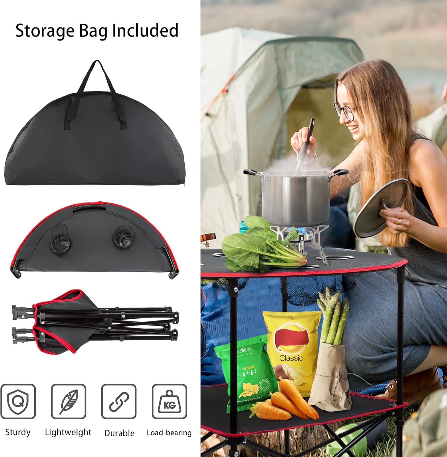 [Lightweight and Portable Table] Easy to fold and set up, the camping table comes with a carrying bag. It is so handy to go out, fits easily into cars, RV’s, the back of a motorcycle or the river rafts. You will be the envy of any outdoor gathering when you bring out your folding camping table