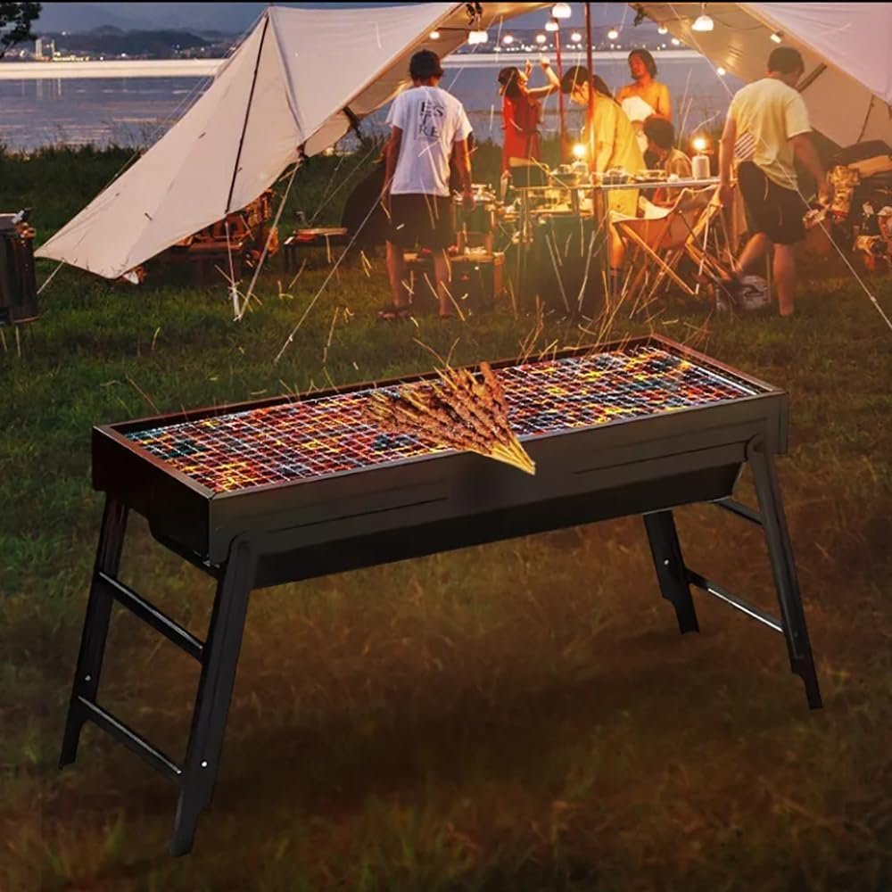 Portable Charcoal Grill, Portable Tabletop BBQ for Outdoor Cooking | Compact Folding Grill for Camping, Hiking, Picnics & Travel | 24”x13”x9” Lightweight Smoky Flavor