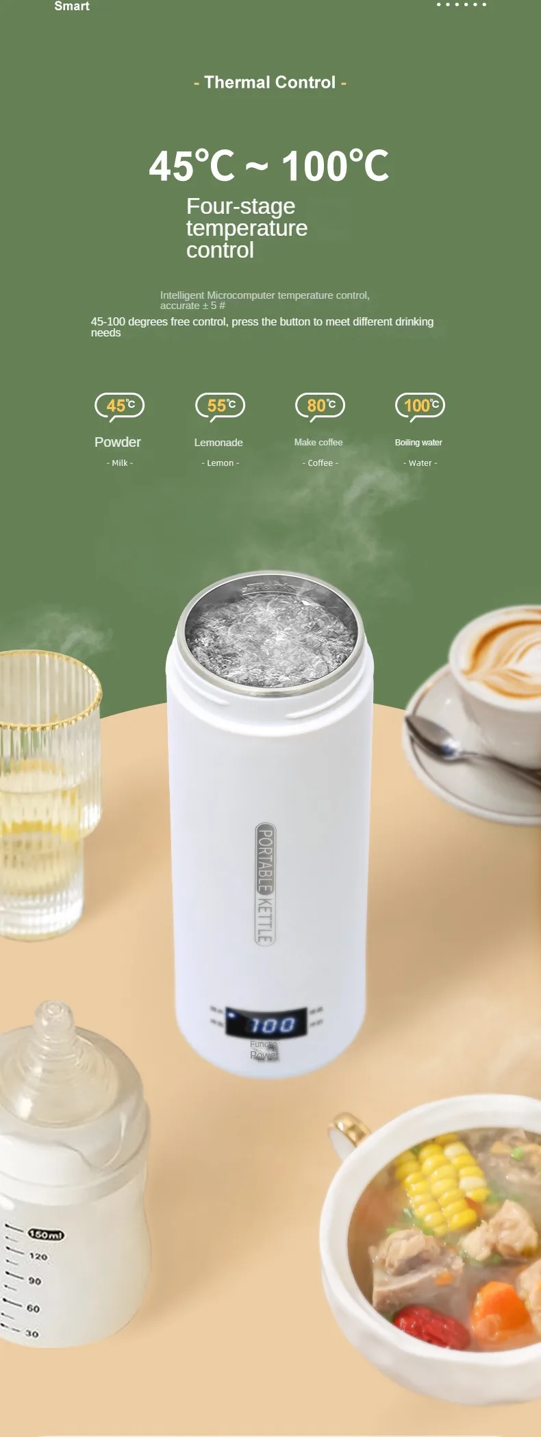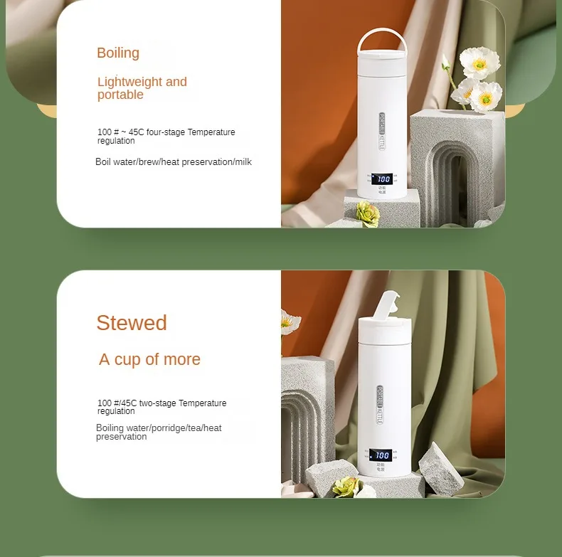 Portable Electric Tea Coffee Kettle Travel Boil Water Stewable Keep Warm Smart LED Baby Milk Bottle Warmer