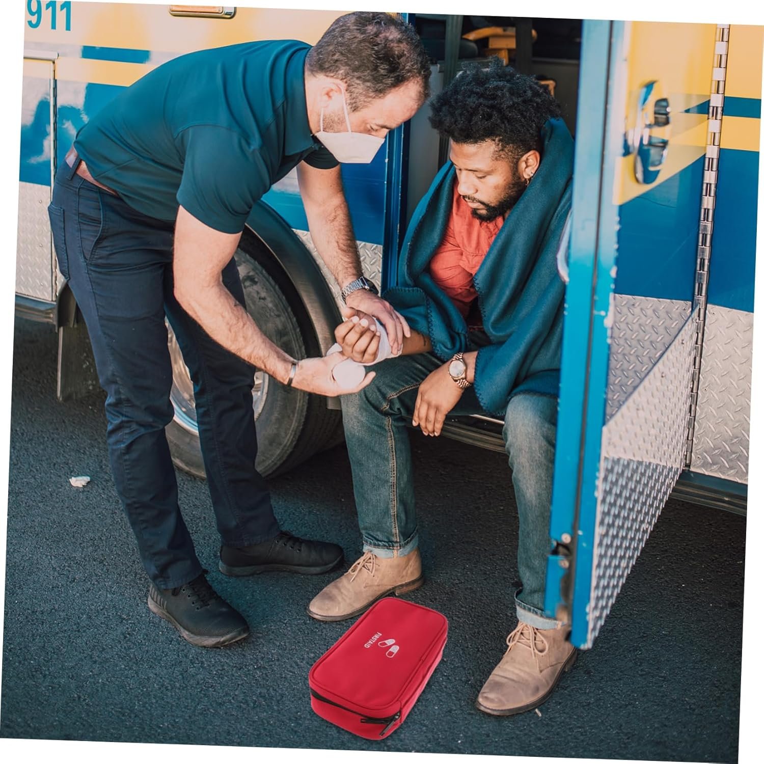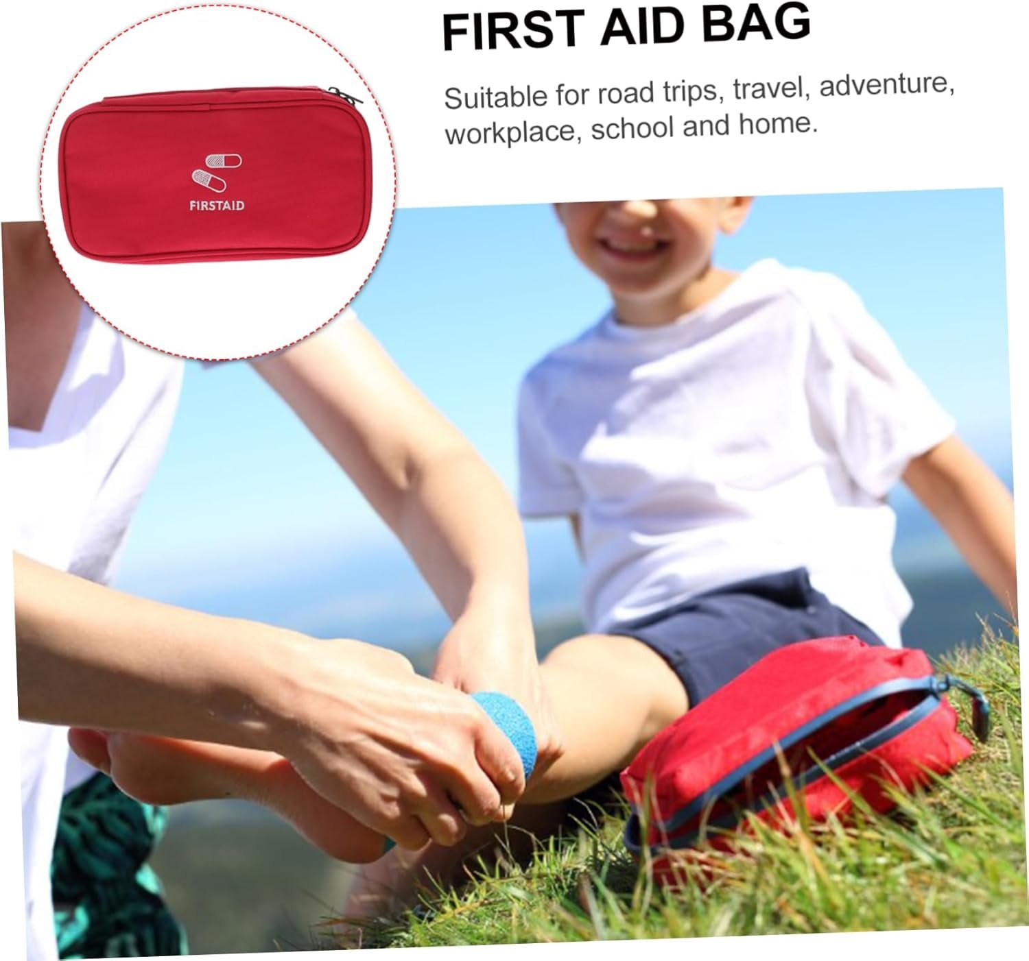 Portable First Aid Bag Durable Oxford Emergency Response Trauma Pouch for Home Outdoor and Travel Red Survival Medical Kit with Mesh Pockets for Item Organization