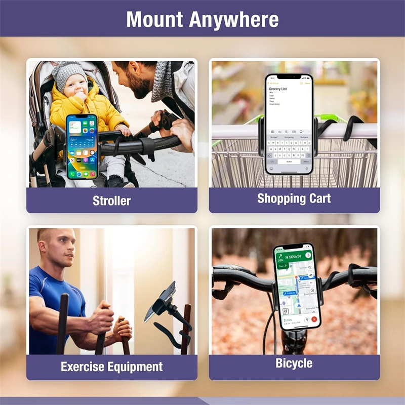 Portable Flexible Wrap Around Mobile Phone Holder for IPhone Samsung Adjustable Stand for Car Stroller Bike Boat Desk Bed Mount
