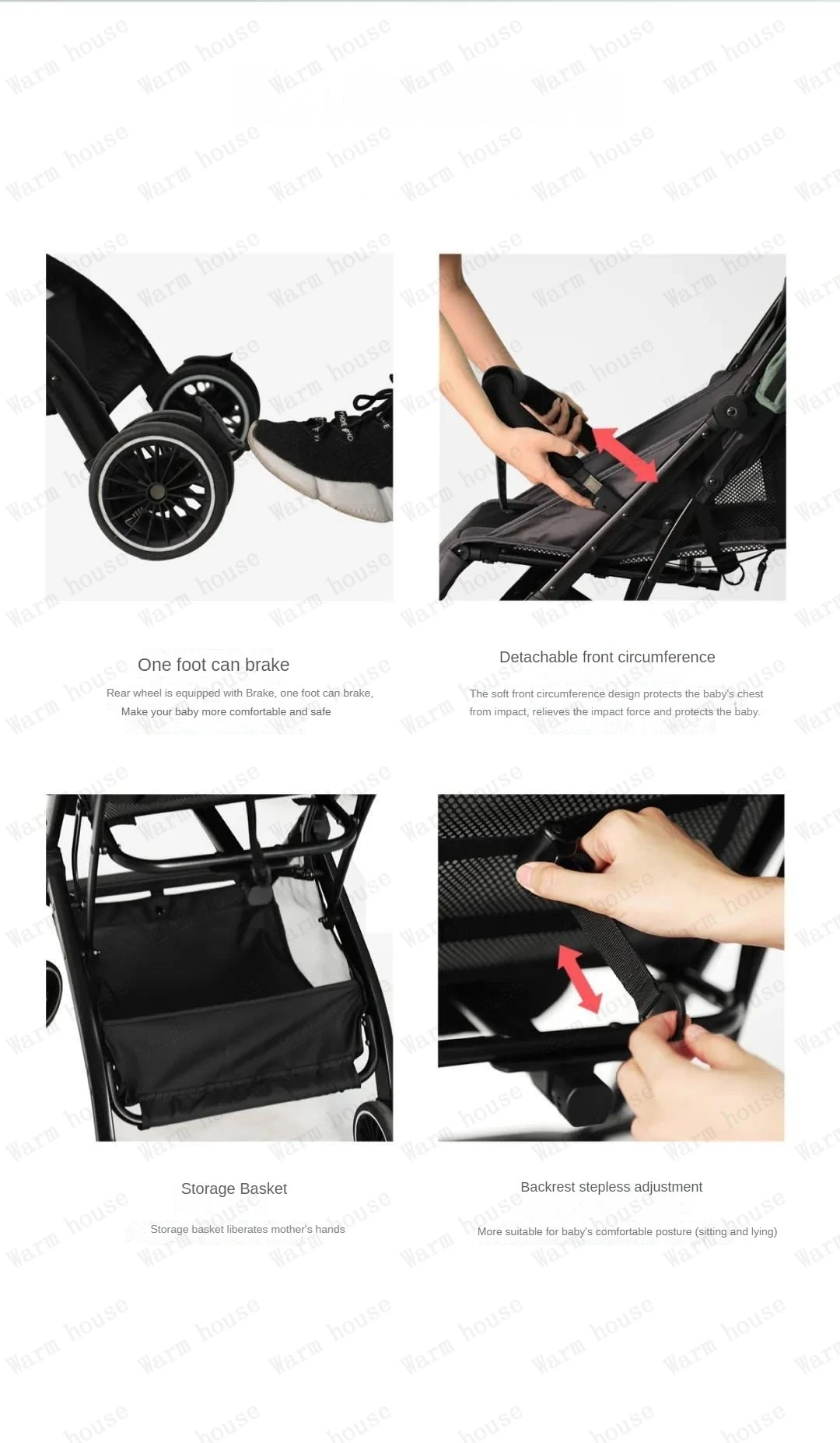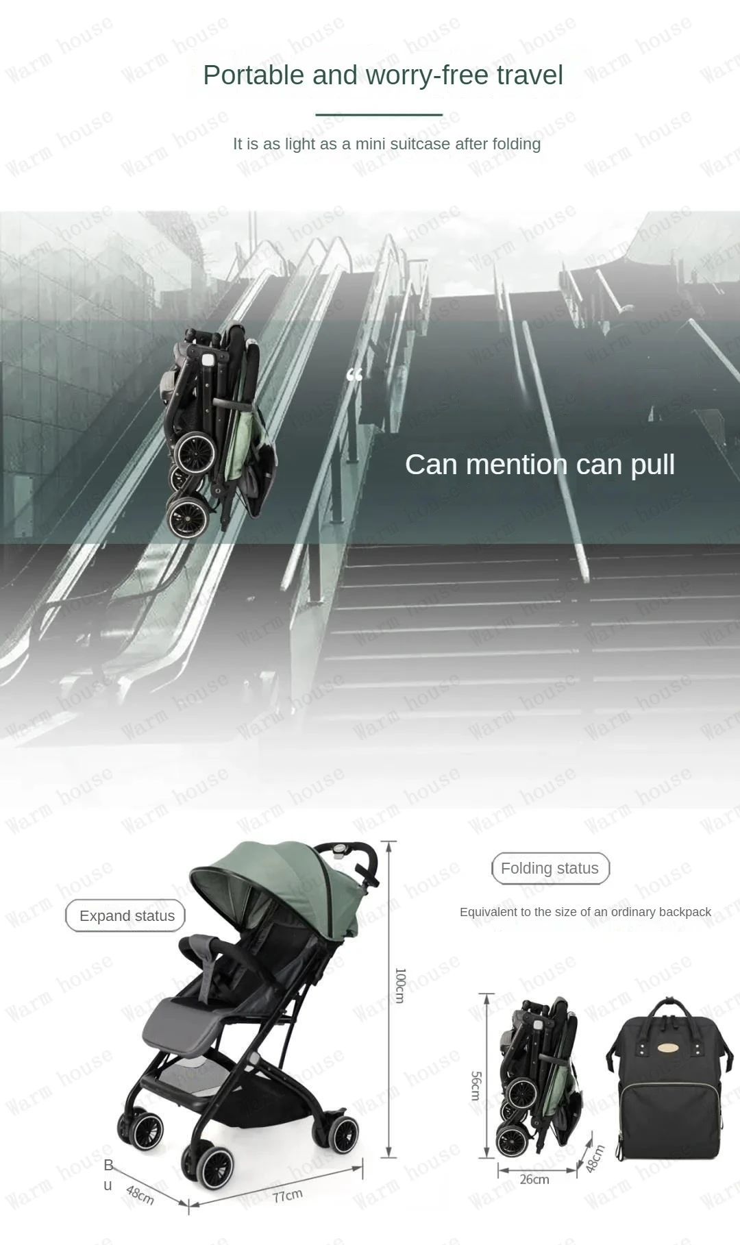 Portable Foldable Baby Stroller Multifunctional Children’s Stroller Removable and Washable Lightweight Four-wheel Baby Stroller