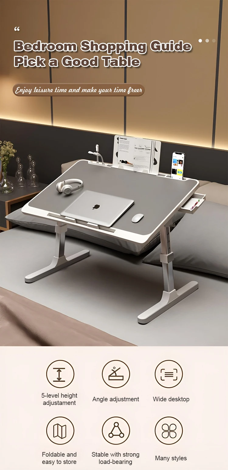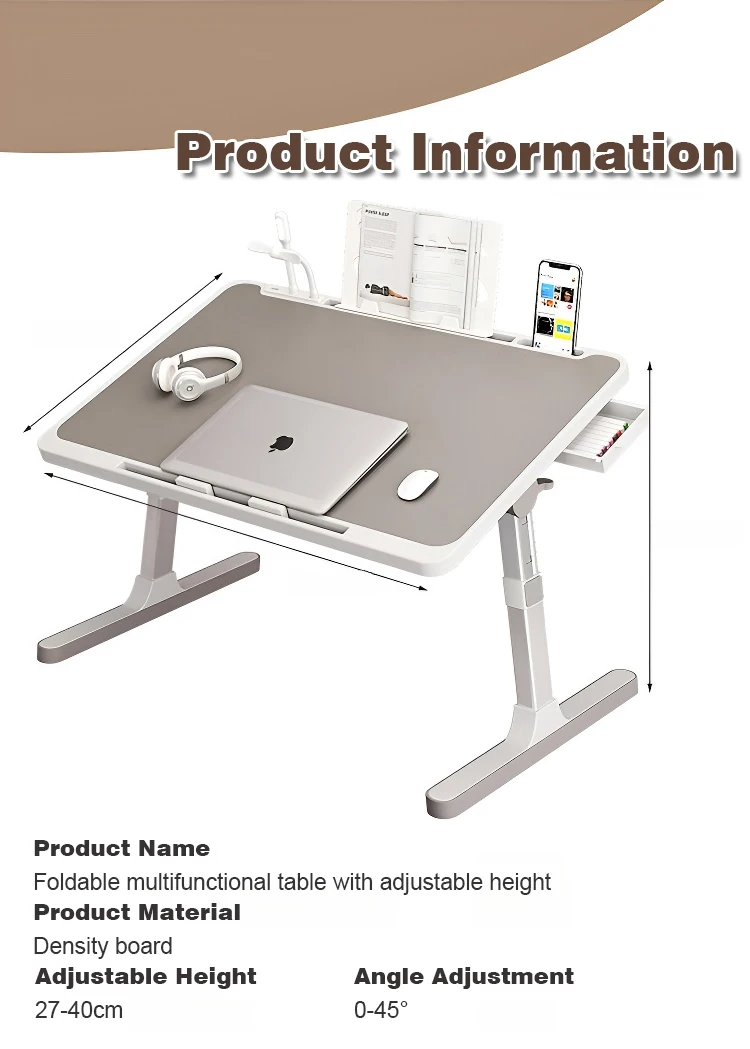 Portable folding computer desk Student dormitory Lifting bed table Household Multifunctional Adjustable Laptop desk with Drawer