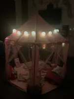 According to the publication, it is a little house that is decorated with lights, which I also bought, it comes complete and clean. I won’t be able to assemble it because it’s for a gift. 🎁 until the end of October and I hope the parents and the little girl like it. Thank you, I recommend, excellent store and seller.