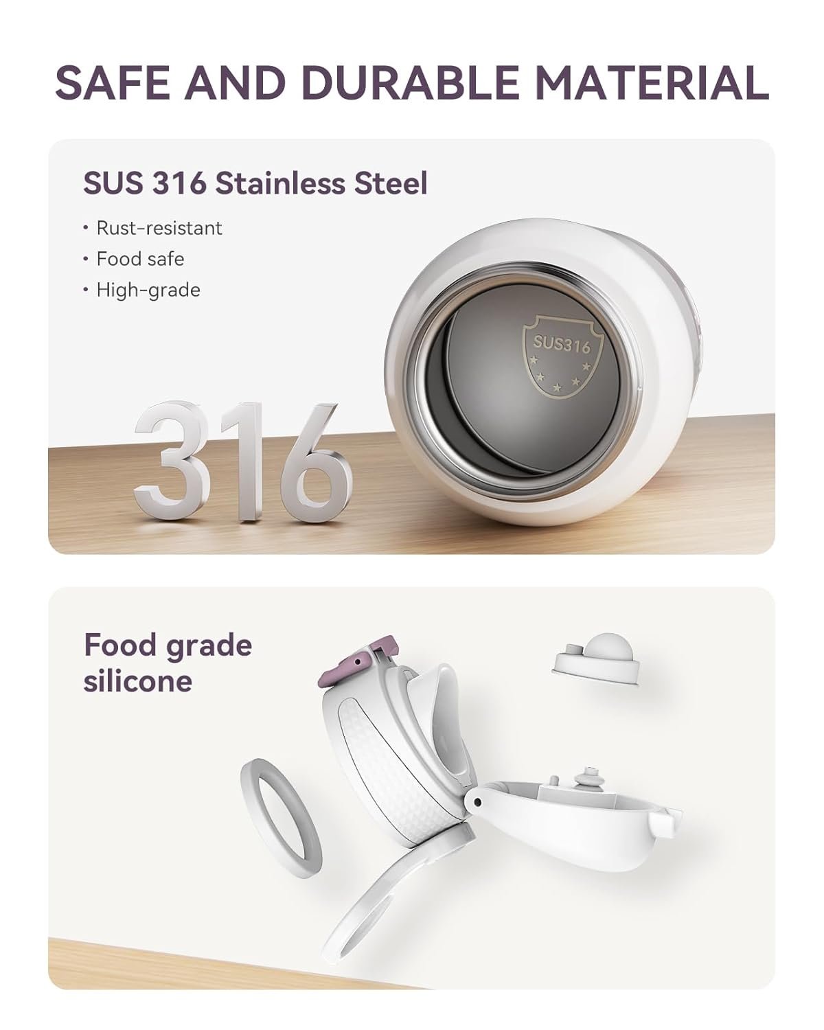 【Stainless Steel No Odor】We use SUS 316 stainless steel as the inner container but NOT plastic, so it’s safe and no odor completely. You don’t need worry about the smell or heath risk of any plastic bottle
