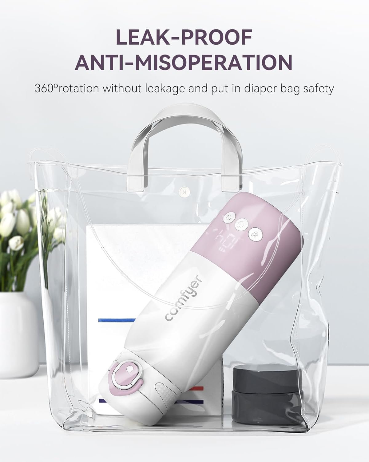 【Fast Heating in 2 Mins】comfyer portable bottle warmer can heat water to 104°F in just 2 minutes and refrigerated breast milk to 98°F in 4-5 minutes, ensuring your baby’s milk is ready while in the outside
