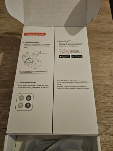 I received the printer, it arrived quite quickly….2 weeks. I am happy with the product even though as you can see in one of the pictures a label was not well centered 🙂 . Installing the app and pairing with the printer was easy and fast, there were no problems. Thank you to the seller and i will come back with comments if i notice any problems in use.