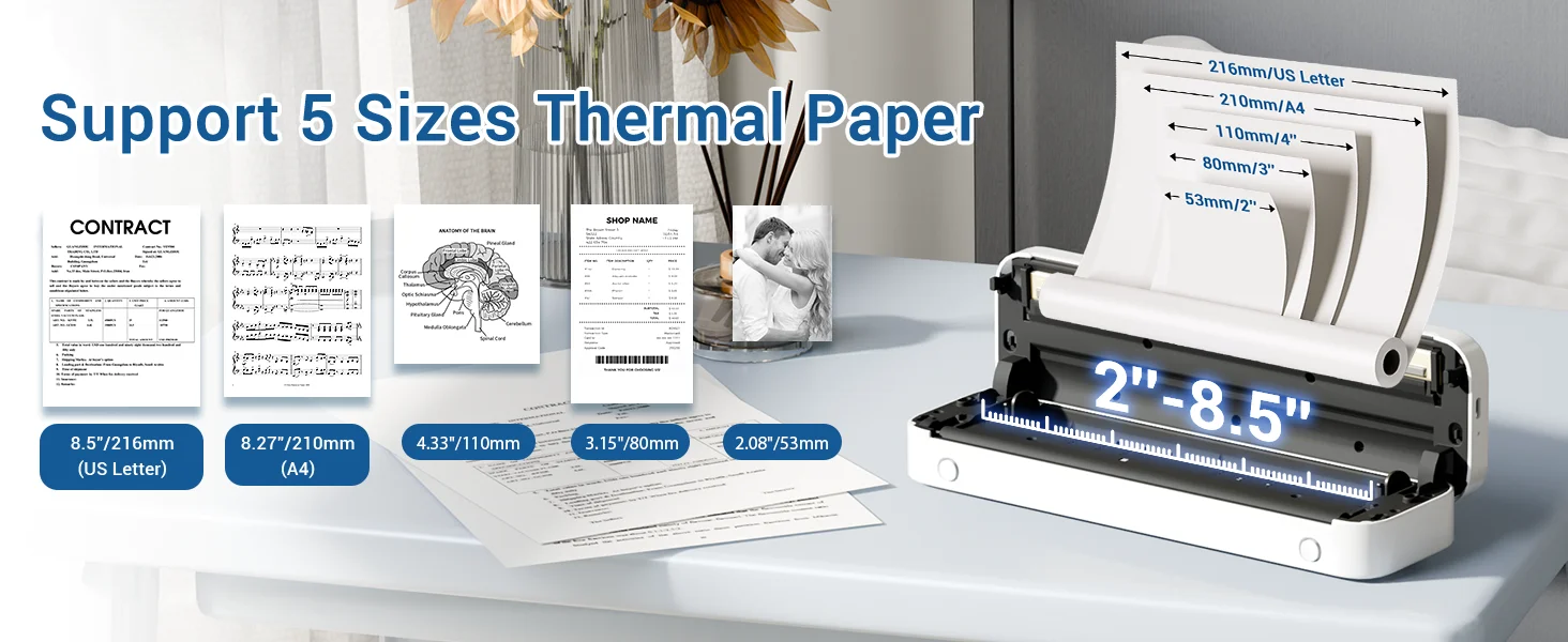 Support for internal storage of roll paper, just place the thermal paper roll in it, means everything you need to print is all stored in Phomemo portable printer.No need to carry an extra stack of paper!