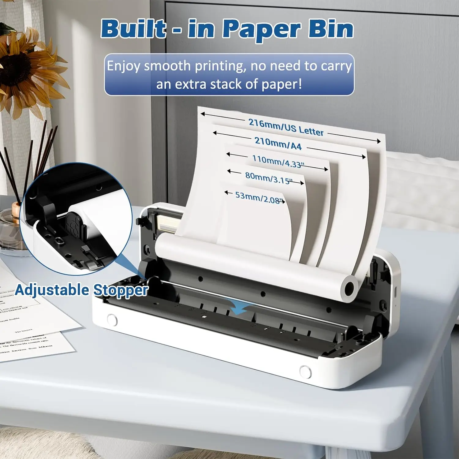 Support for internal storage of roll paper, just place the thermal paper roll in it, means everything you need to print is all stored in Phomemo portable printer.No need to carry an extra stack of paper!