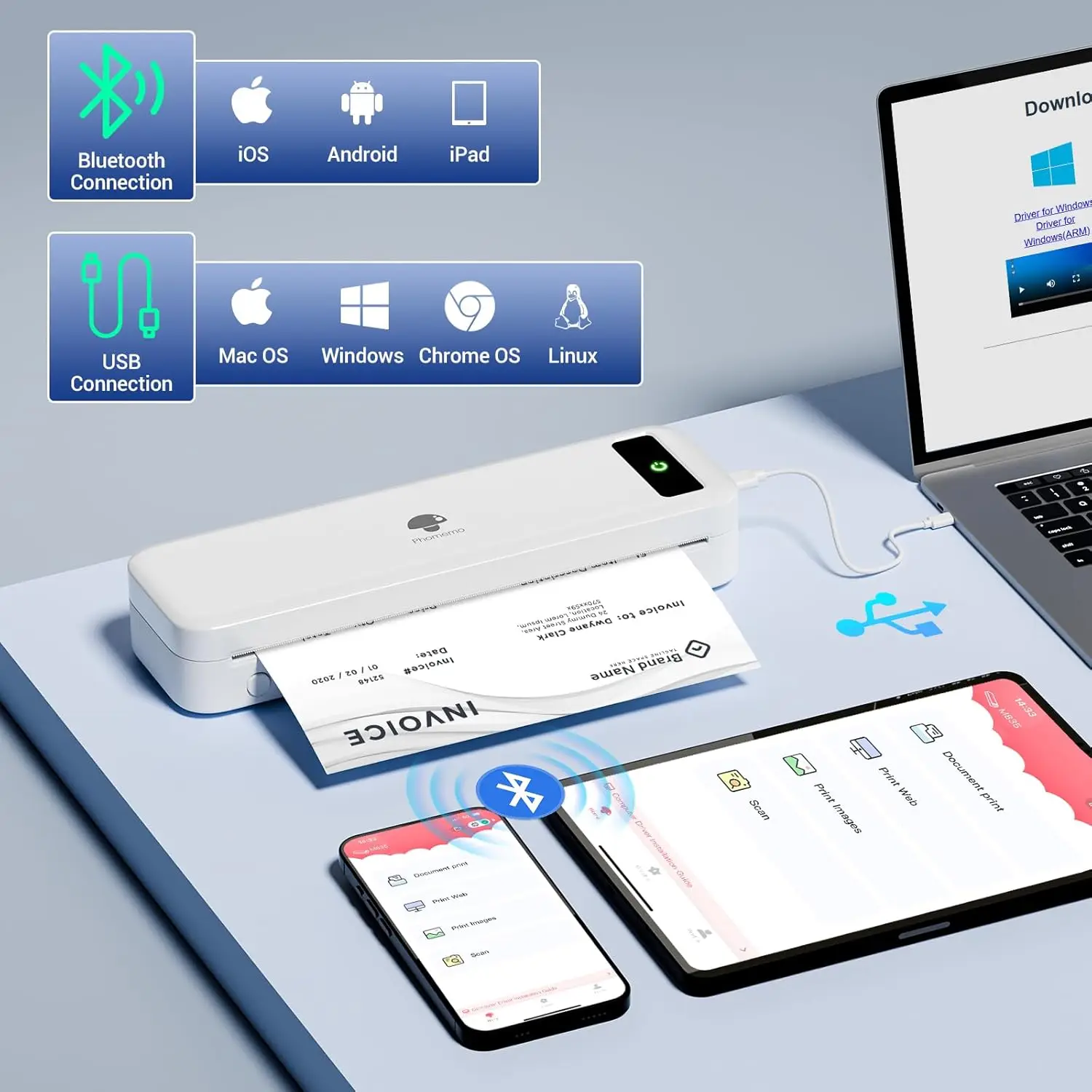If you’re looking for a mobile printer for the vehicles/travelling, upgraded phomemo compact wireless printer definitely meets your portable options! Weighs only 1.5lb and don’t takes up any room, it enables quick printing of urgent invoice, bills of lading, boarding passes etc., anytime, anywhere.