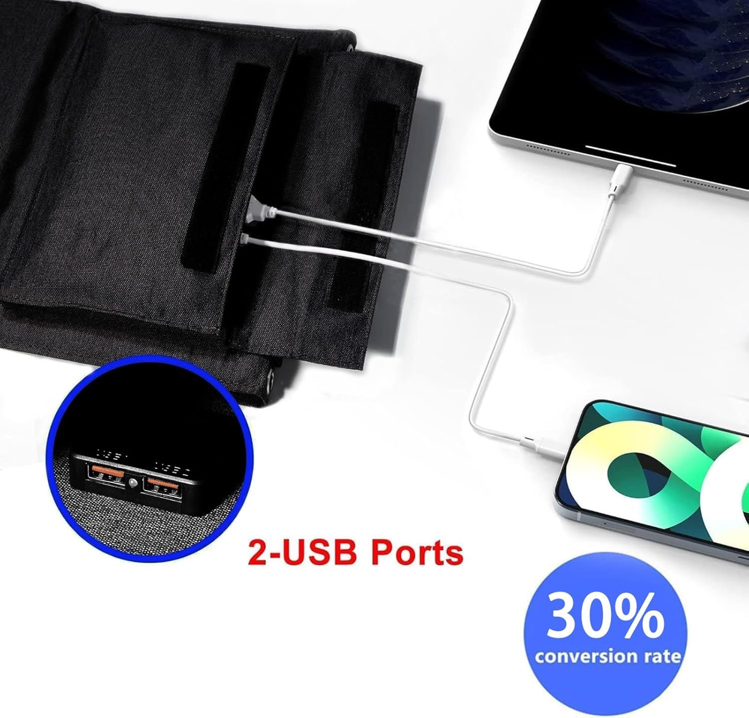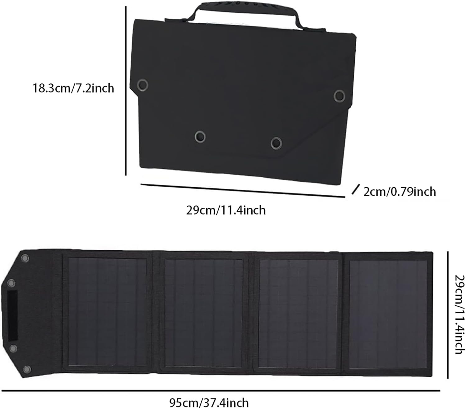 【Portable & Convenience】Our solar charging panels have small copper alloy grommets in every corner, which can be easily hung on backpacks, trees, or tents. The lightweight design (29×18.3x2cm folding) is perfect for outdoor activities.