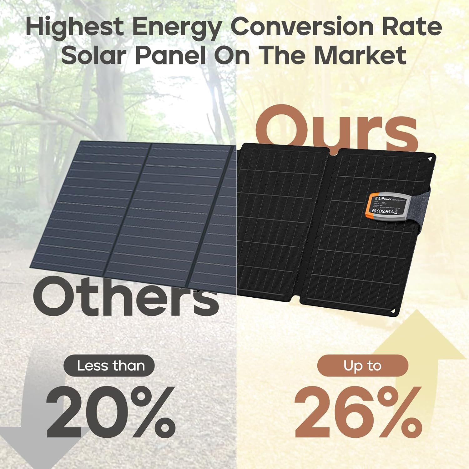 Superior Solar Conversion Rate: Constructed with high-quality monocrystalline silicon, this panel converts up to 26% of solar energy into usable power, offering high efficiency and excellent performance in low-light conditions for faster charging speeds