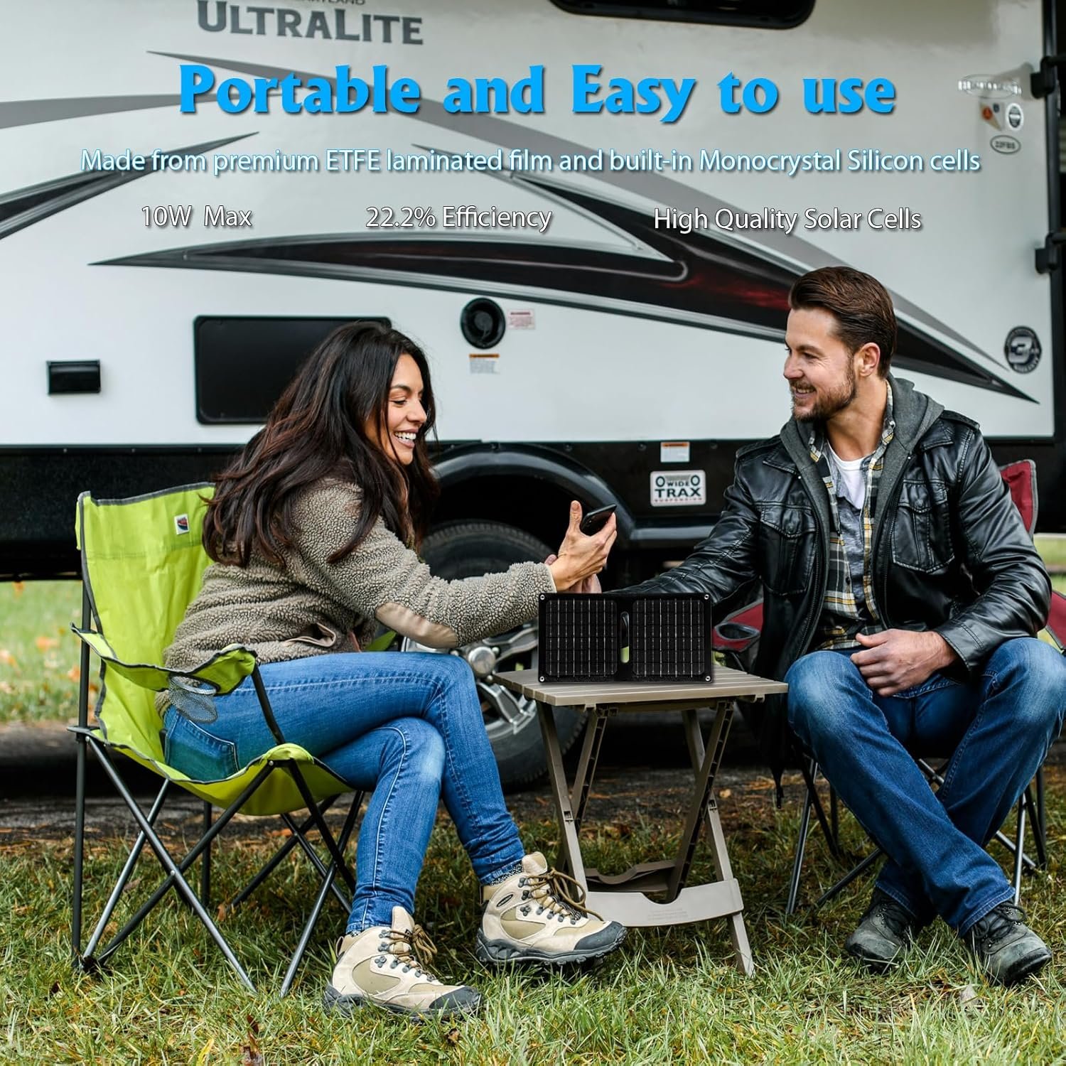 【Portable Carry】The Portable solar panel charger is a great option if you’re taking an extended camping trip or if you’re traveling somewhere with an unreliable power grid. With compact Fold size(8.4 x 7.9 x 0.8inches) and lightweight design(0.69 lbs – only panel), it’s portable and light enough to fit into any camping backpack or hiking daypack. it is a great choice for outdoor activities, travel, and emergencies.