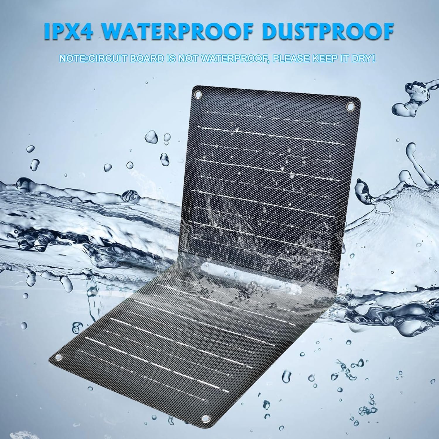 【Easy to Use】Unfold your solar panels, pick up the Usb, then connect your devices with the high efficiency solar panel. You could just hang it on the backpack, tent, tree, beach, or anywhere the sunlight is not sheltered. Please note that water can’t enter the circuit board.