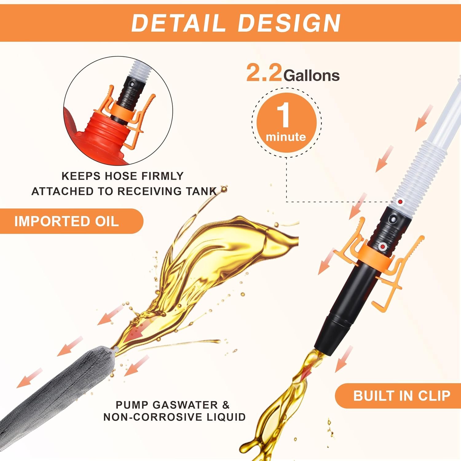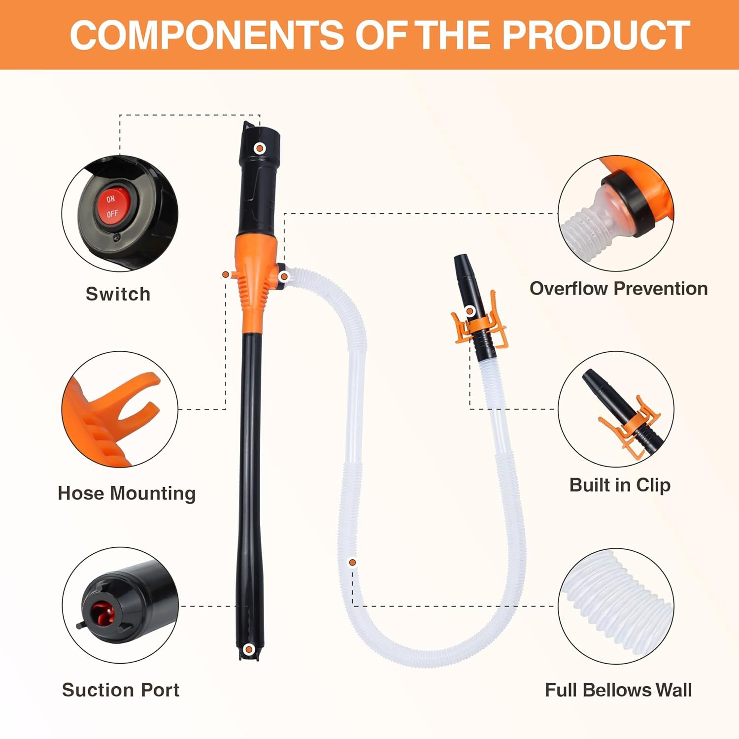 【Portable Electric Pump】: With a battery-powered design, this gas siphon pump is perfect for on-the-go fuel transfer. Our fuel transfer pump is a great investment for any DIY mechanic or outdoor enthusiast.