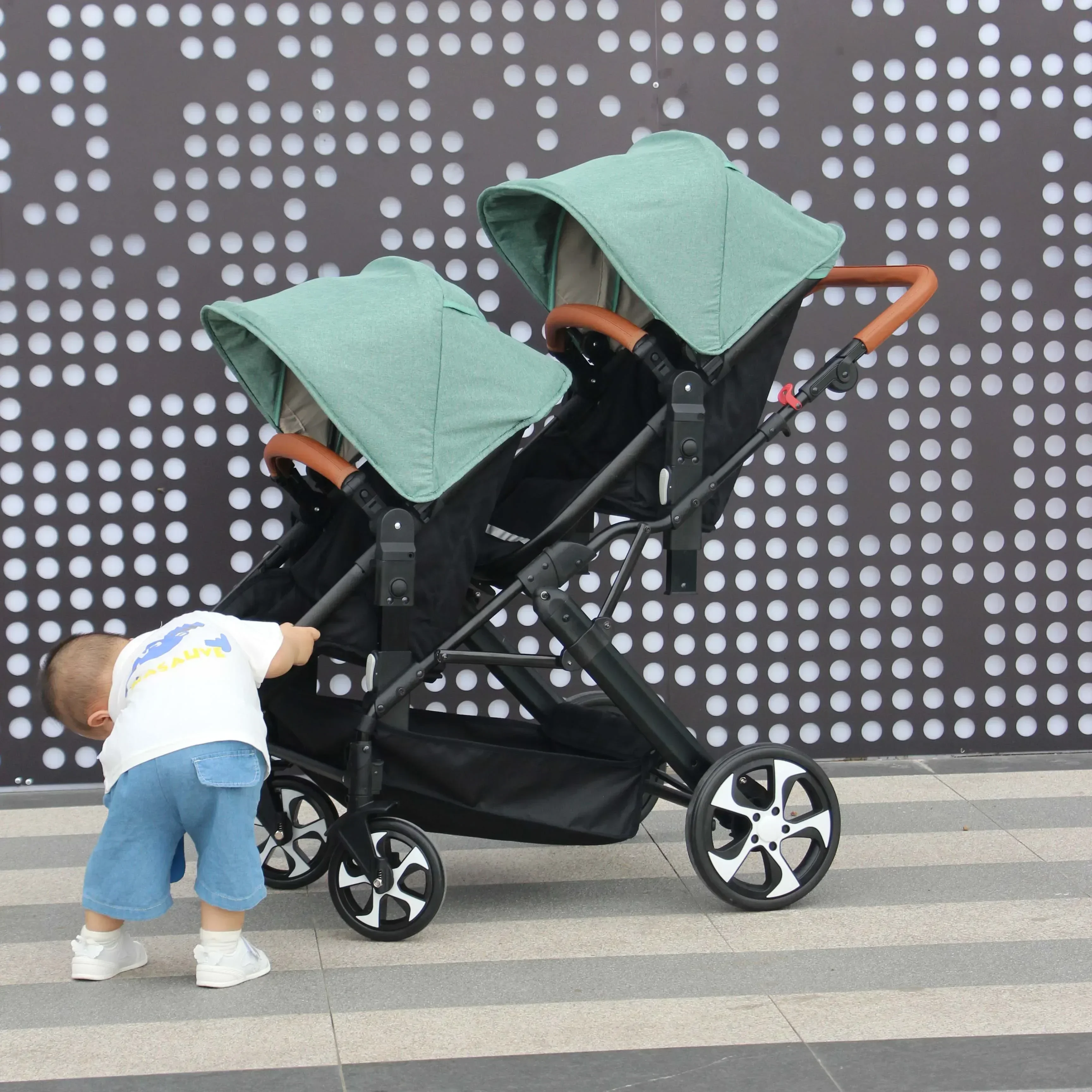 Portable Twin Baby Stroller Collapsible Double Stroller Traveling Twin Stroller Two-way High View Double Baby Carriage