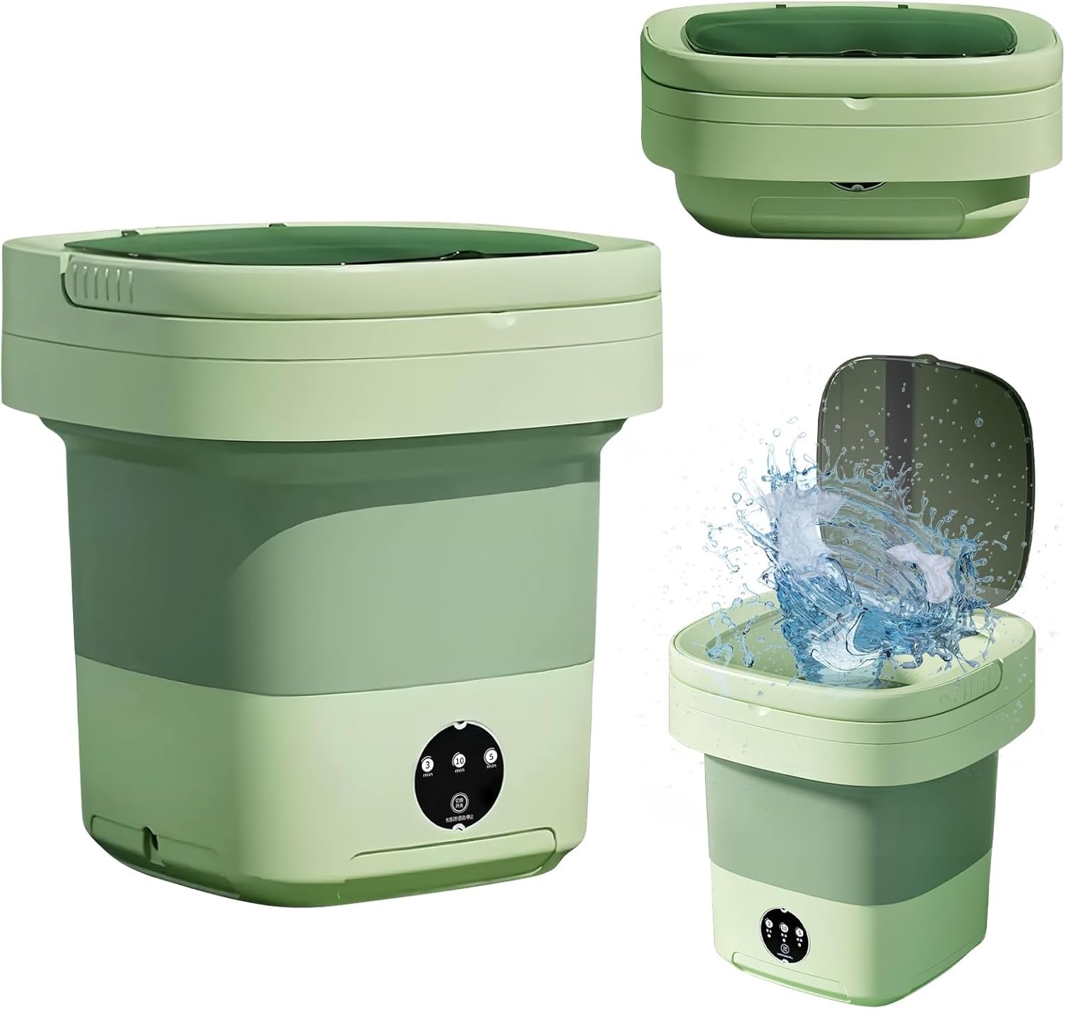 Portable Washing Machine, 11L Large Capacity, Green, Mini Washer for Underwear, Socks, Travel, Camping, Apartment, RV, Efficient Cleaning, Front Load, Low dB Noise