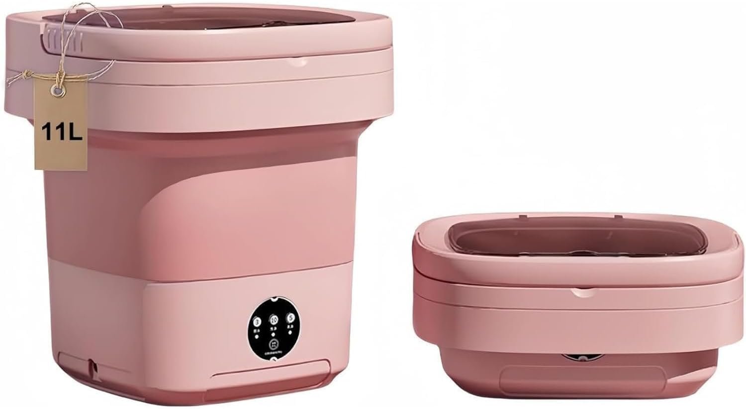 Portable washing machine,Mini Washer,11L upgraded large capacity foldable Washer.Deep cleaning of underwear, baby clothes and other small clothes.Suitable for apartments, dormitories, hotels (Pink)