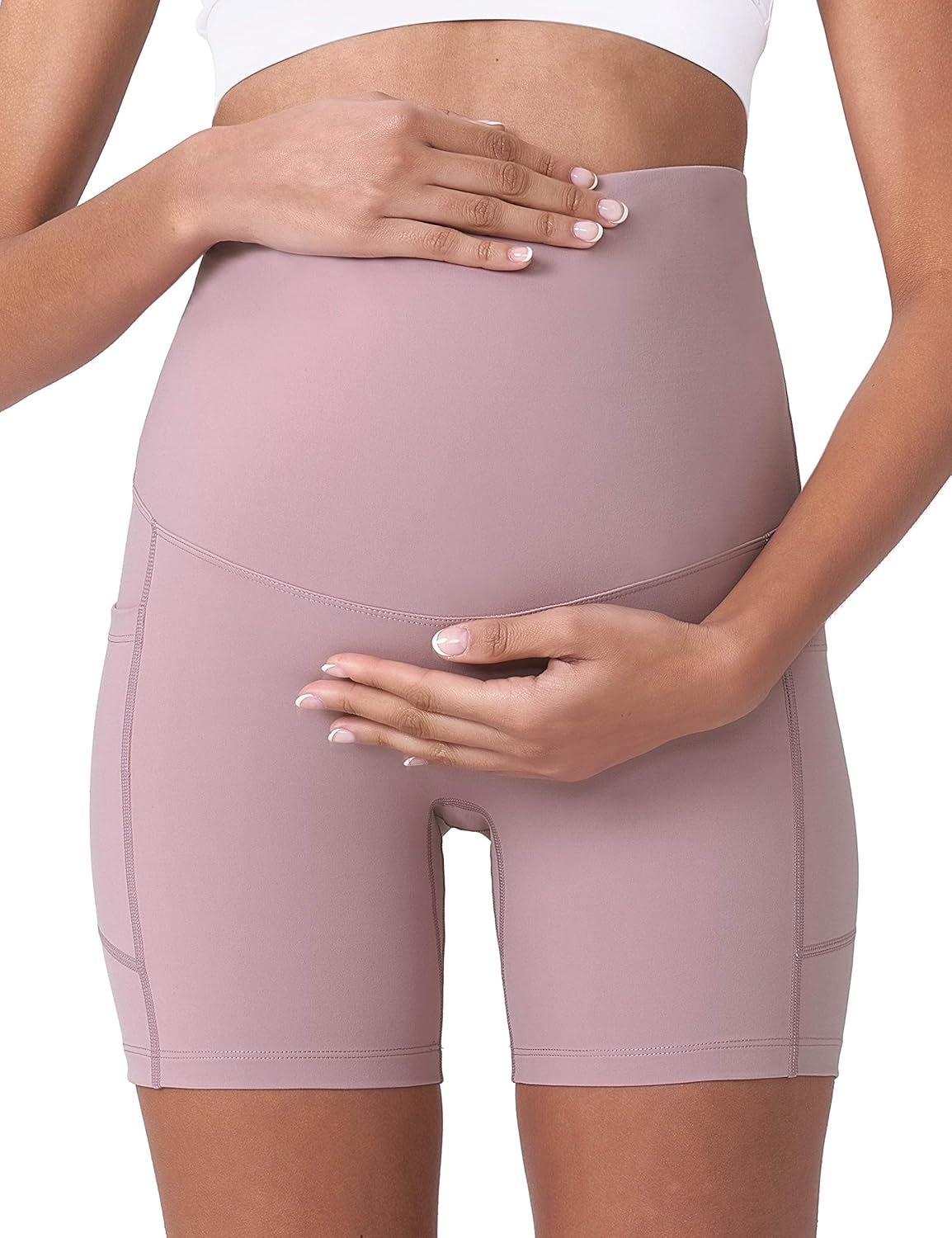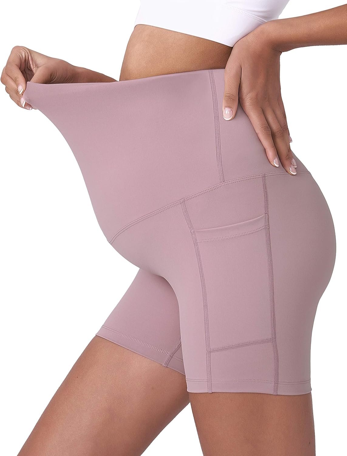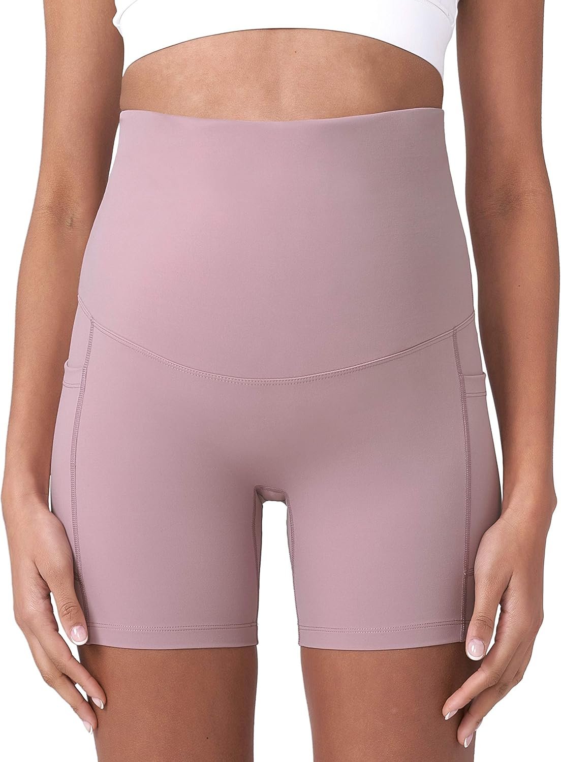 POSHDIVAH Women’s Maternity Yoga Shorts Over The Belly Bump Summer Workout Running Active Short Pants with Pockets 5″/8″