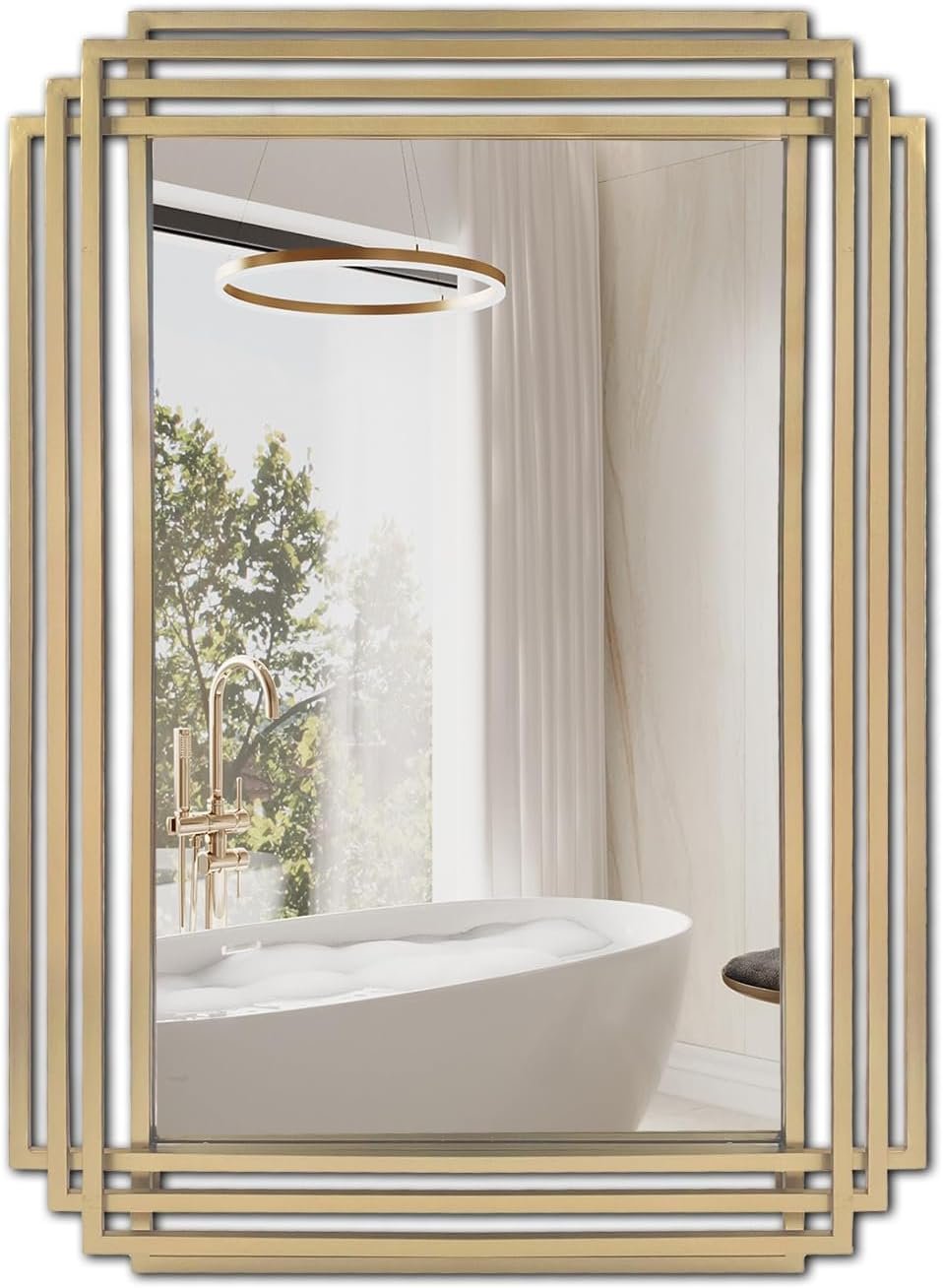 POZINO Gold Bathroom Mirror – Decorative Wall Mirror 24″x36″ Sophisticated Rectangle Mirror for Bathroom Living Room Bedroom Entryway Fireplace Hallway