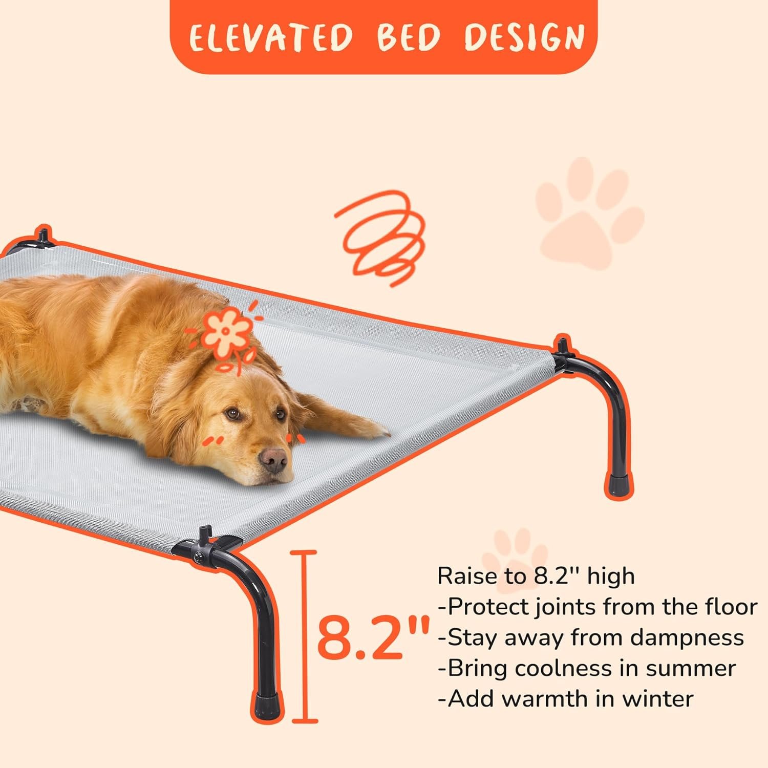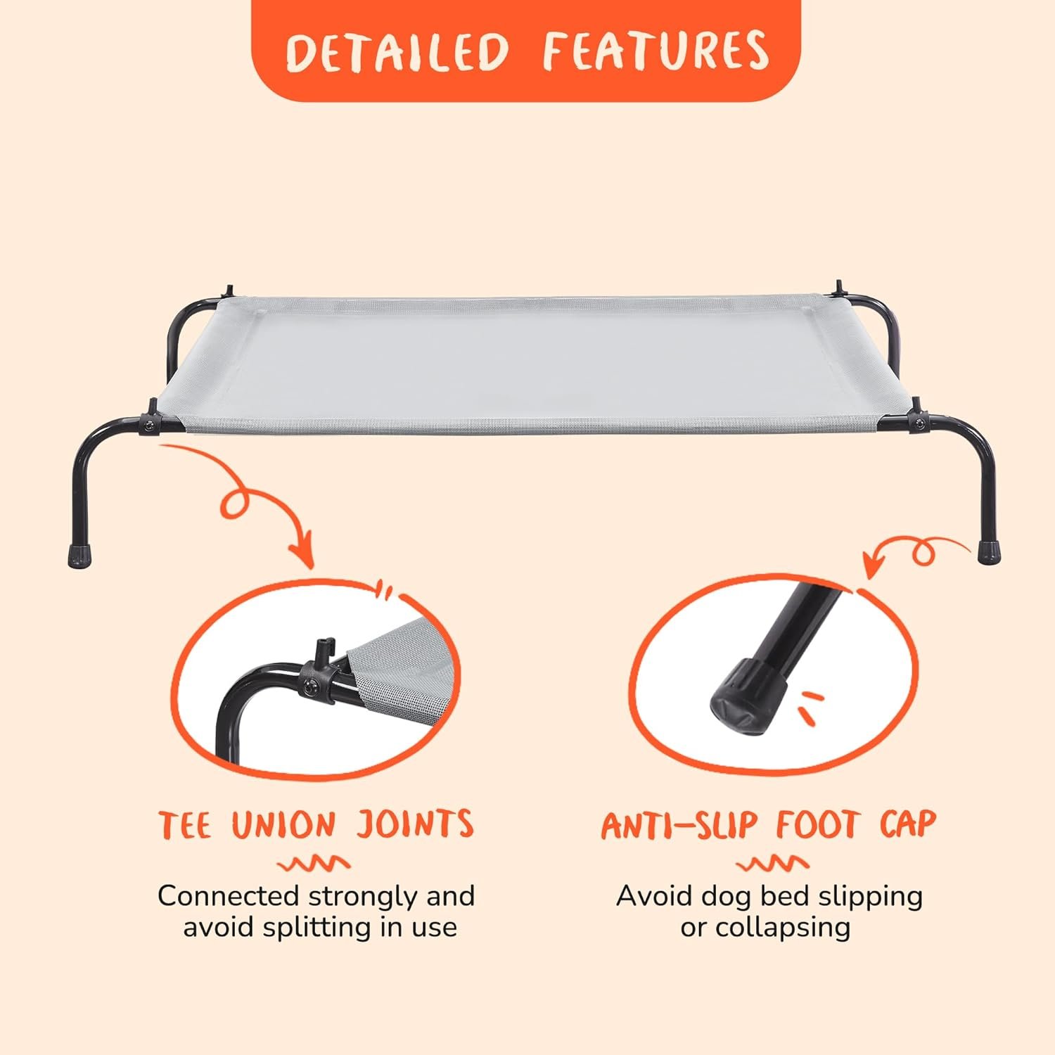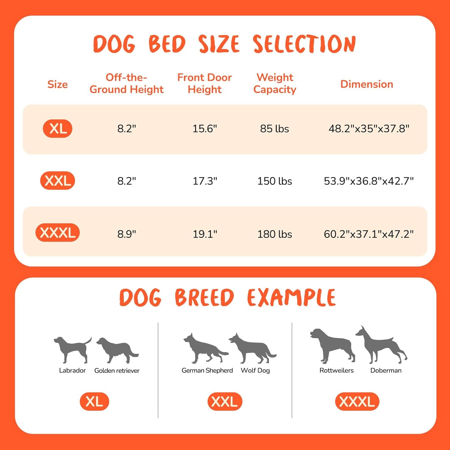 Various Sizes Available: Small, medium, large, and even extra-large dogs can find their perfect fit! With sizes ranging from L to XXXL, plus non-slip foot pads and sturdy bottom struts, you don’t have to worry about this elevated pet bed tipping over—even by the poolside or during a rainy day
