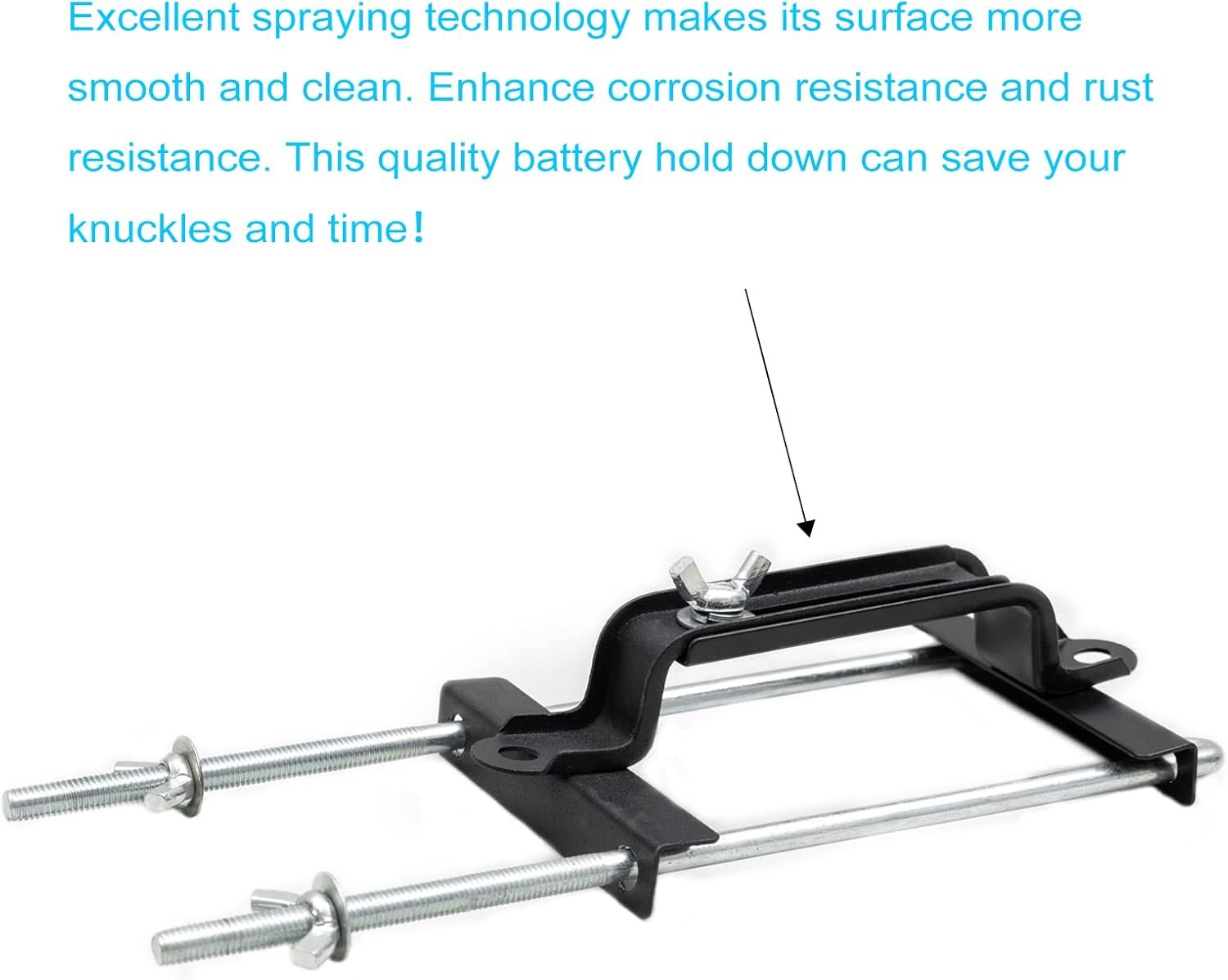 HIGH-QUALITY: Aoerzn battery hold down for tray is made of high quality iron and stainless steel. Excellent and effective. Long service life. Easy to install and uninstall. This quality battery hold down for tray can save your knuckles and time!