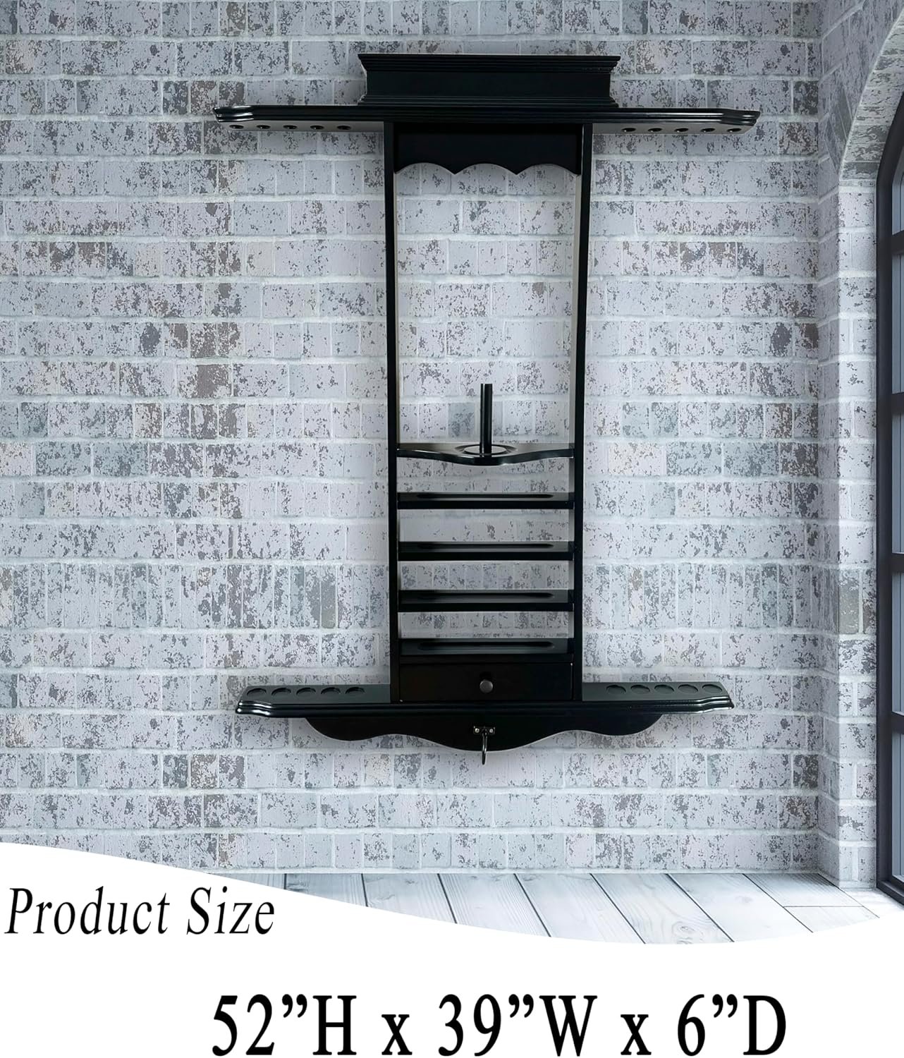 Product dimension: 6″D x 39″W x 52″H, BLLIARDS CUE RACK ONLY. Billiard accessories for illustration purpose