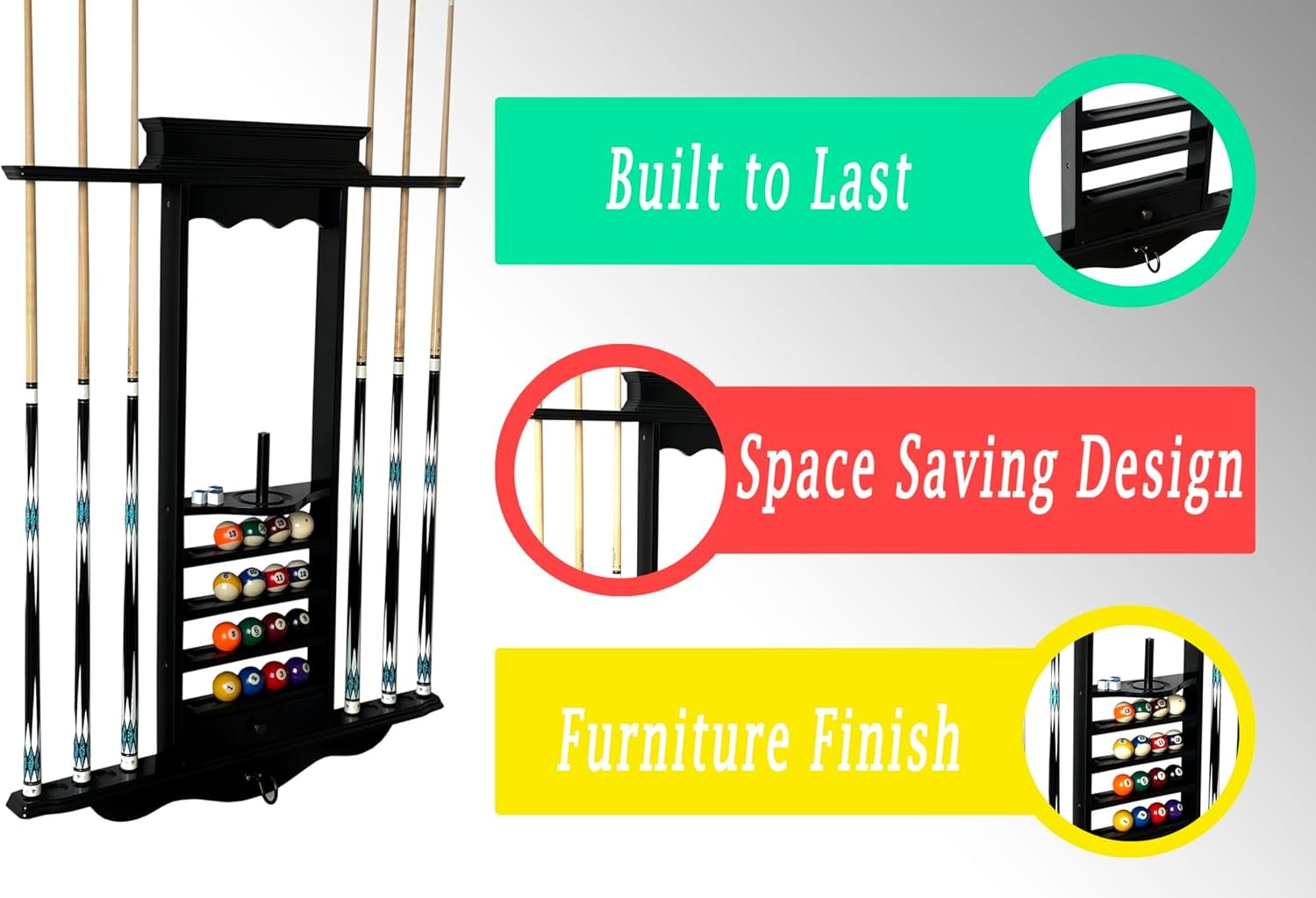 Perfect Game Room Addition: Combines functionality with a touch of sophistication, making it an ideal accessory for billiards enthusiasts and a must-have for game room organization.