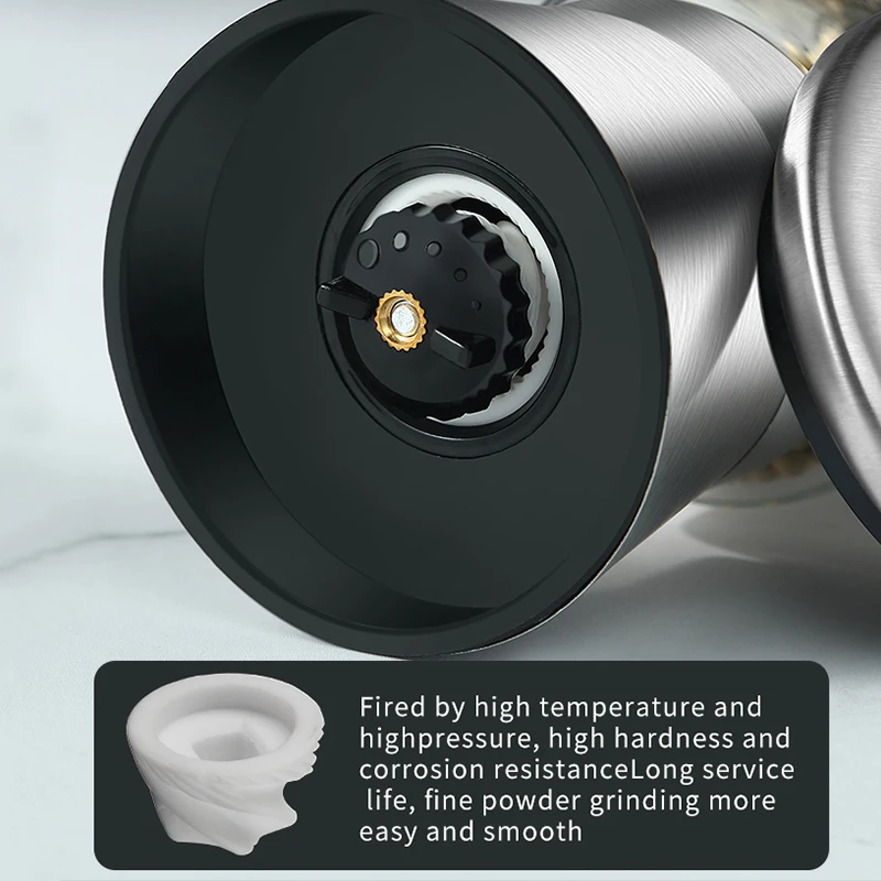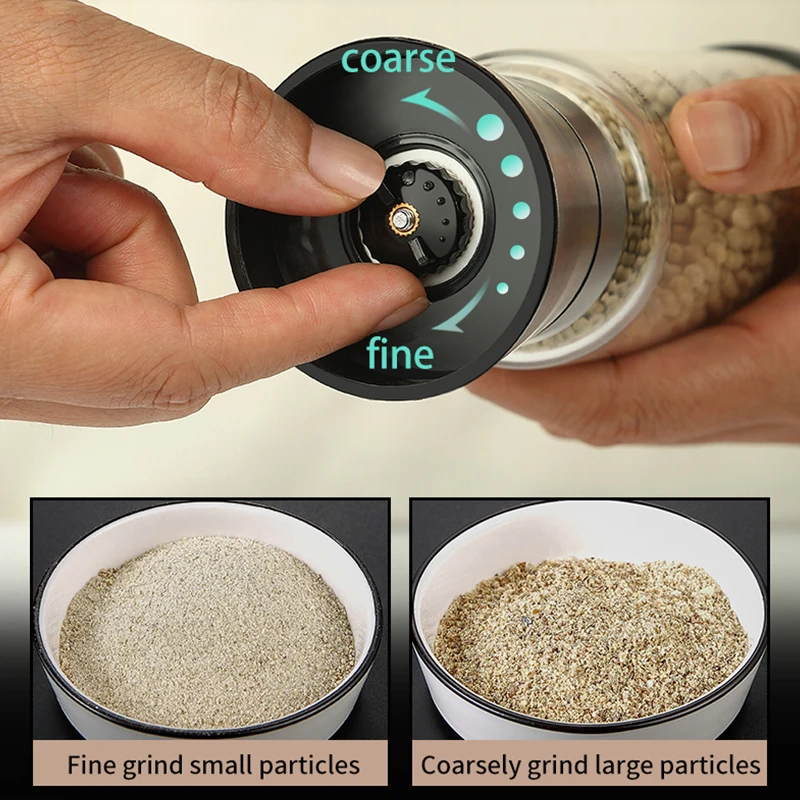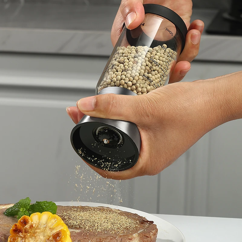 Premium Stainless Steel Pepper Grinder Durable Glass Body Adjustable Coarseness Handheld Spice Mill Pepper Mill