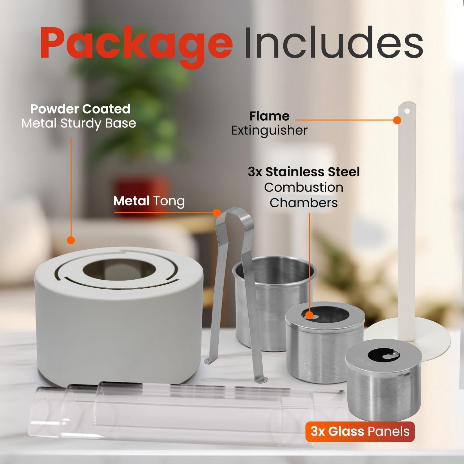 🔥 Exquisite High-Quality Fireplace: Enhance your indoor ambiance with our elegantly designed Tornado Tabletop Fire Pit. Constructed with a robust solid steel base and three clear tempered glass panes, the Glanzfeuer Fire Pit is built to last. Its straightforward assembly requires no tools—simply add ethanol fuel or rubbing alcohol, ignite, and enjoy the mesmerizing swirling flames for years to come.