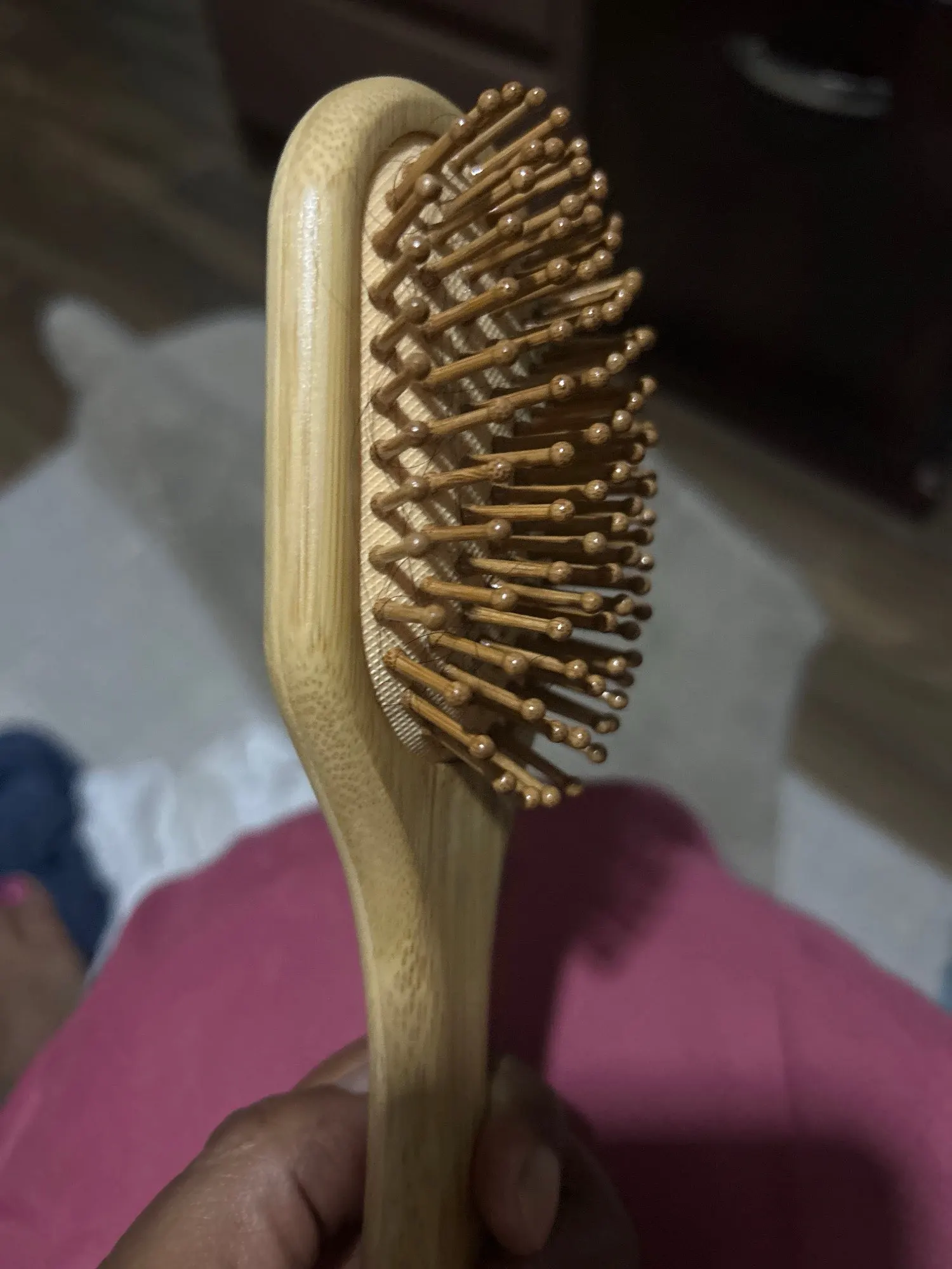Natural Bamboo Bristles are Gentle and Durable. They are less likely to break the hair when combing.