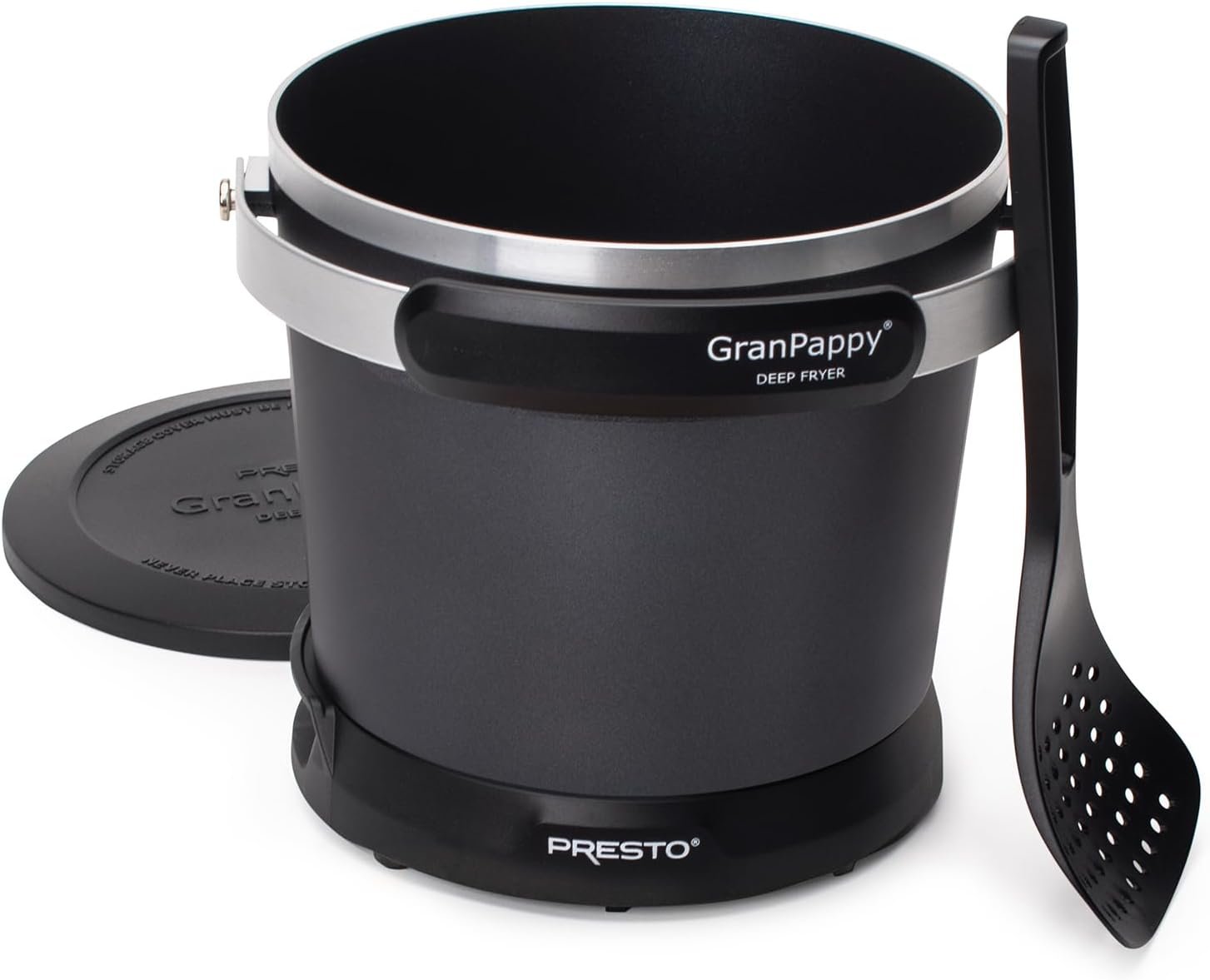 Delicious deep fried foods – fast and easy! Uses just six cups of oil and maintains perfect frying temperature automatically. Snap-on lid stores oil to use again and again. 120 volts, 60 Hz only