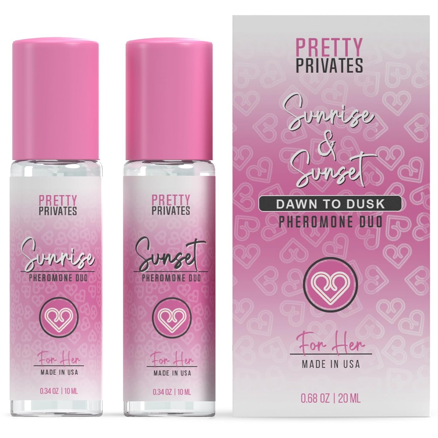 From Sunrise To Sunset – Discover the secret to attraction with Pretty Privates roll on perfume pheromones for women. Our day and night scent combo works in harmony, making you the center of admiration and boosting your confidence to new heights.