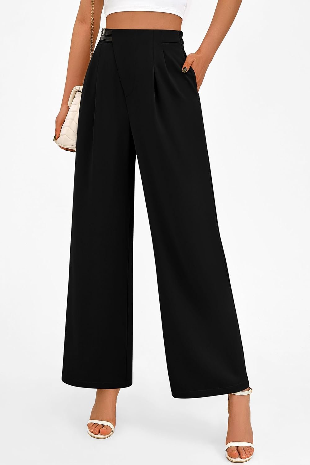 PRETTYGARDEN Women’s Wide Leg Dressy Pants High Waisted Fashion Business Casual Work Office Trousers Palazzo Pant