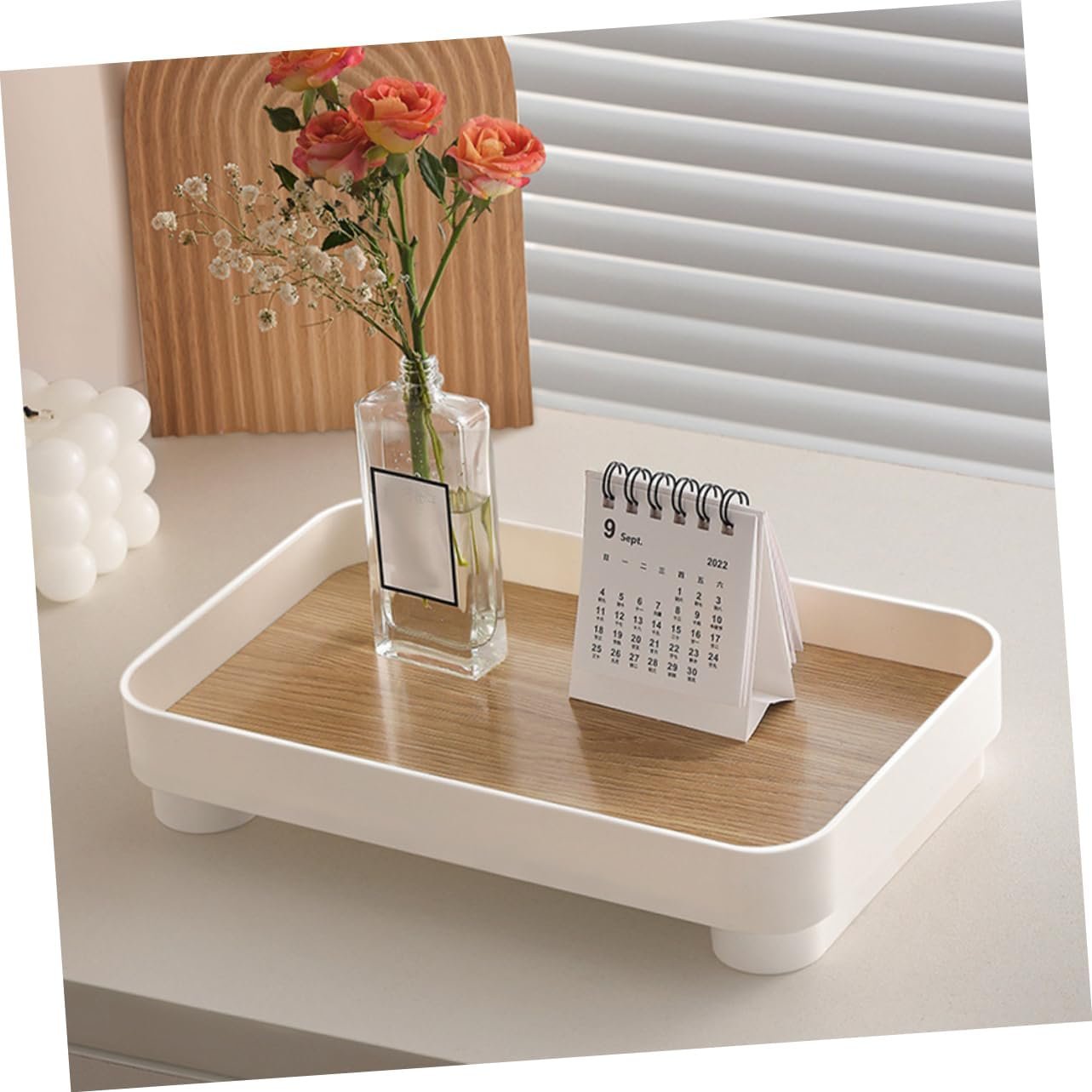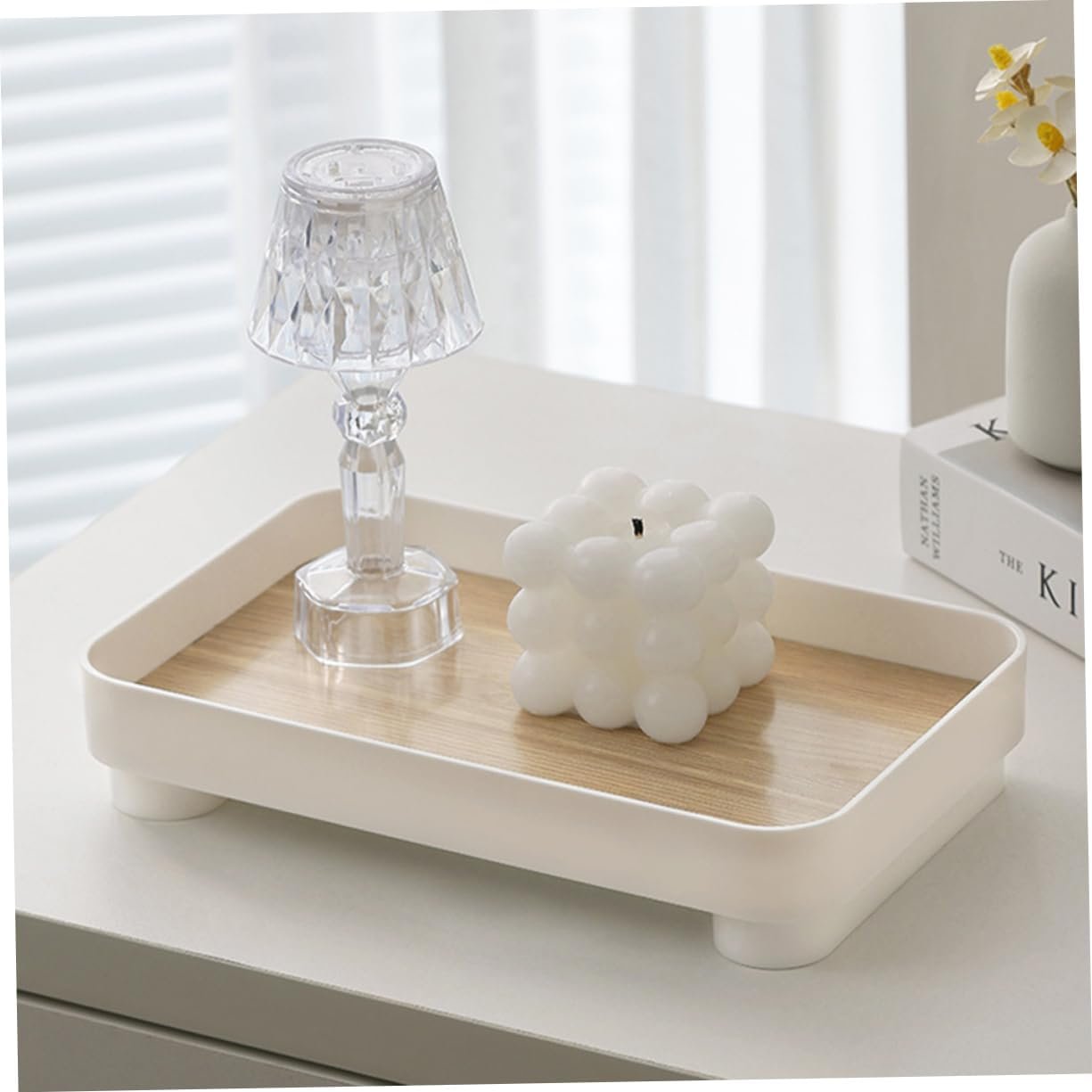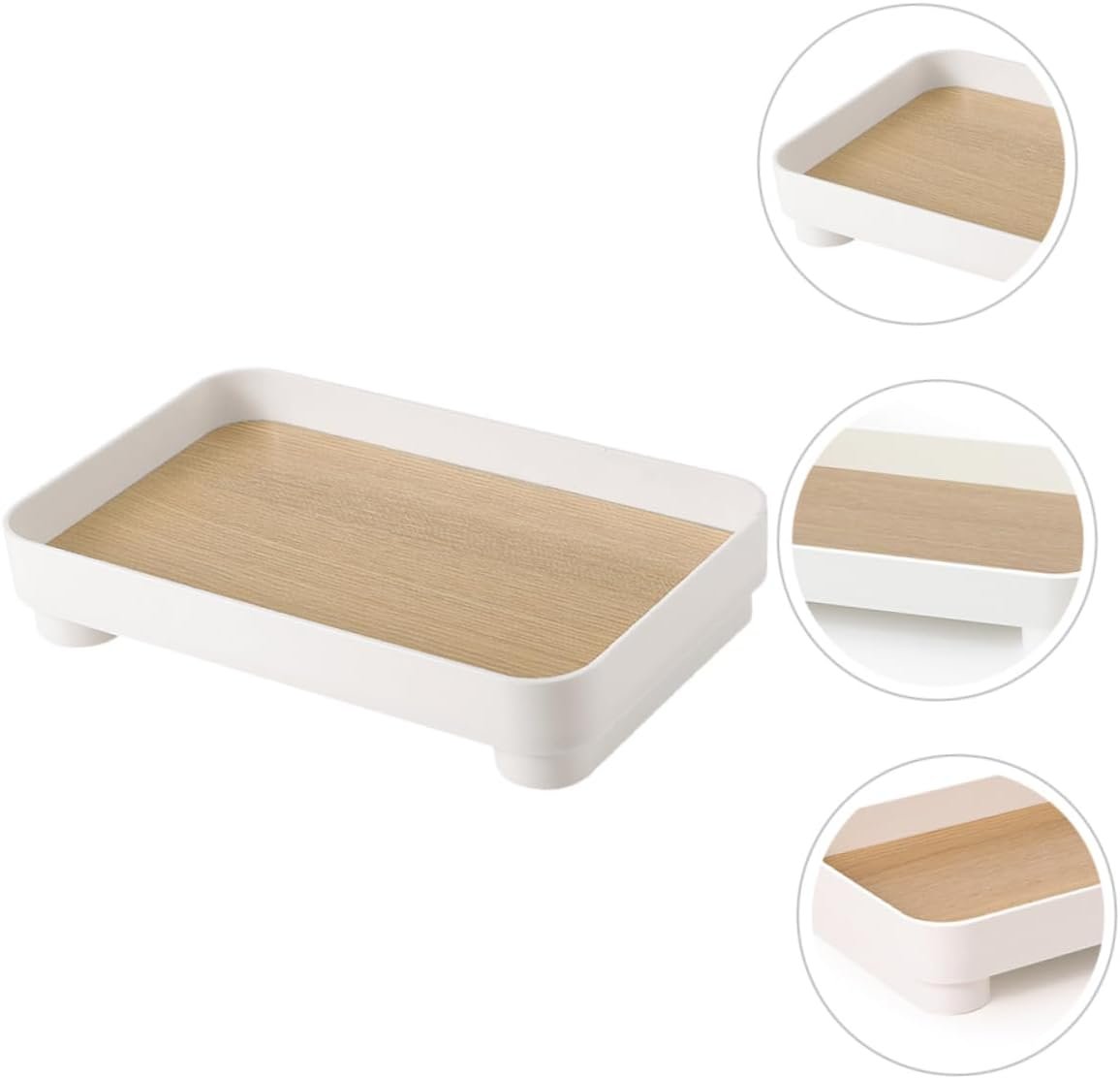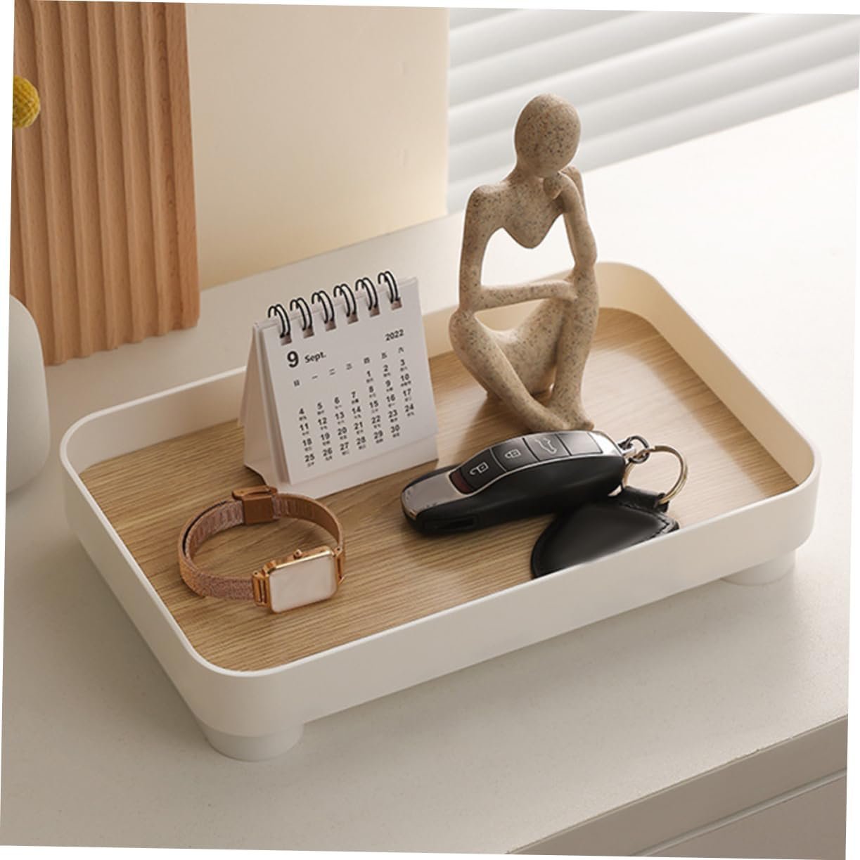 PRETYZOOM Rectangular Wood Grain Jewelry Tray Elegant Desktop Organizing Tray for Cosmetics Perfume and Trinkets Stylish Home and Storage