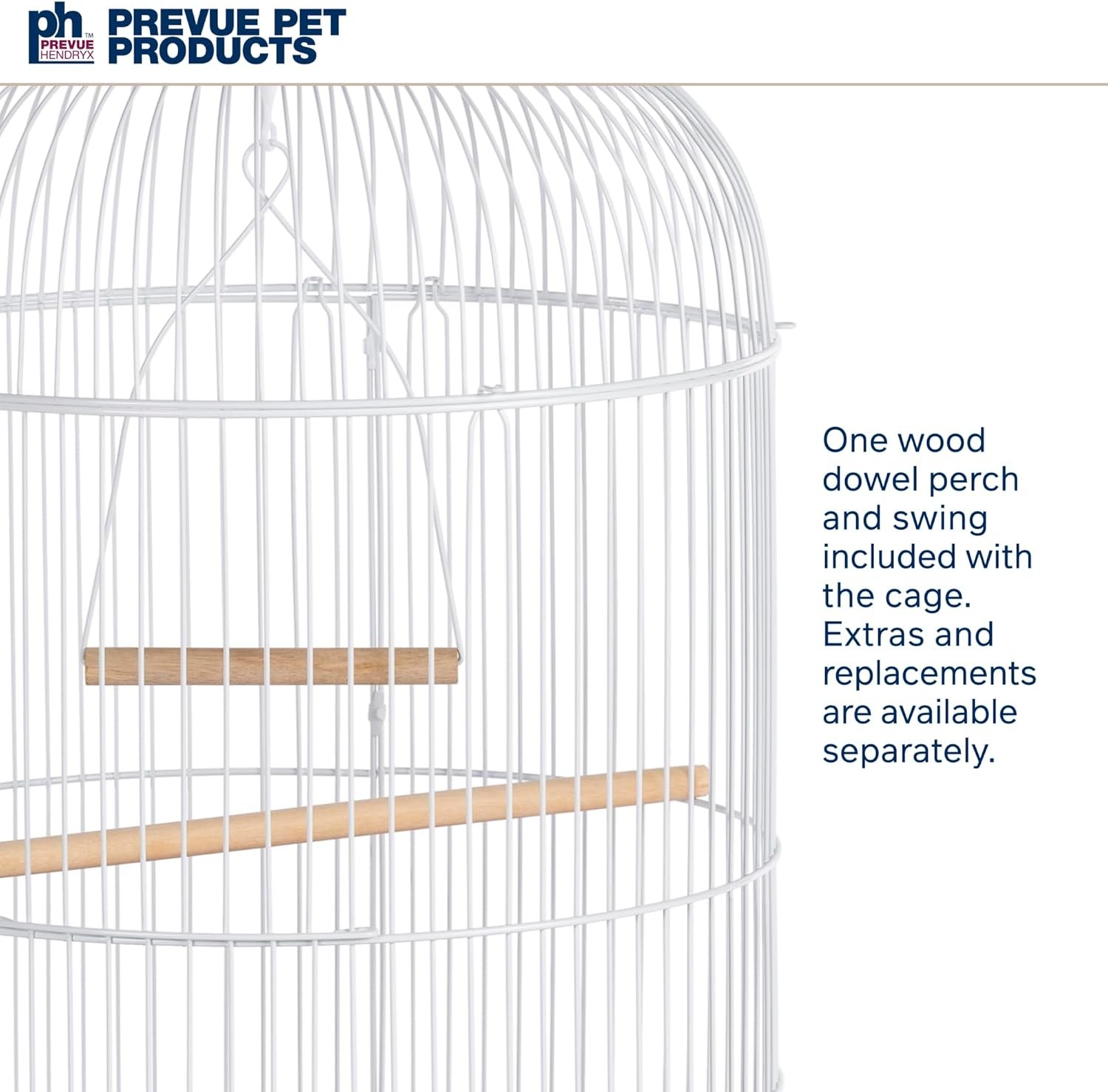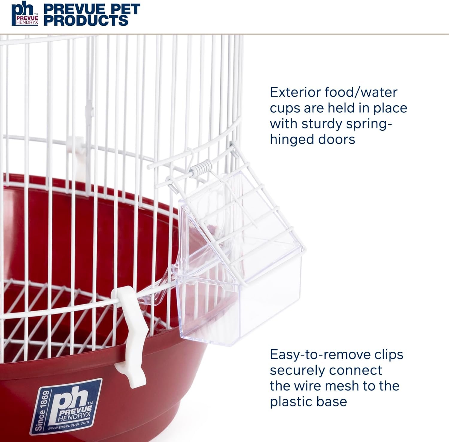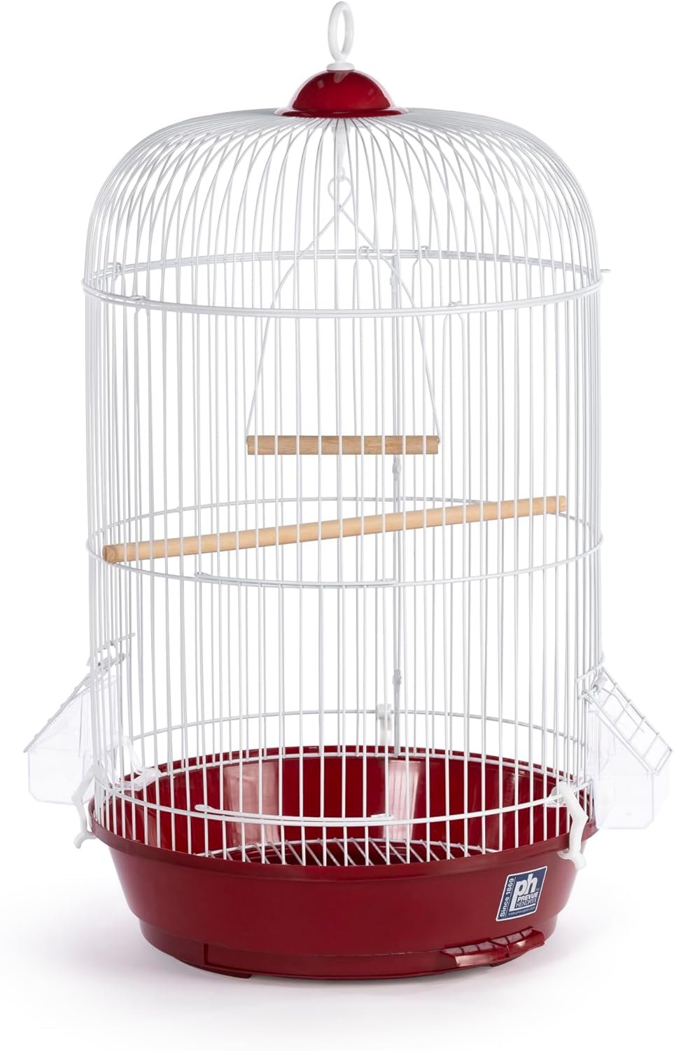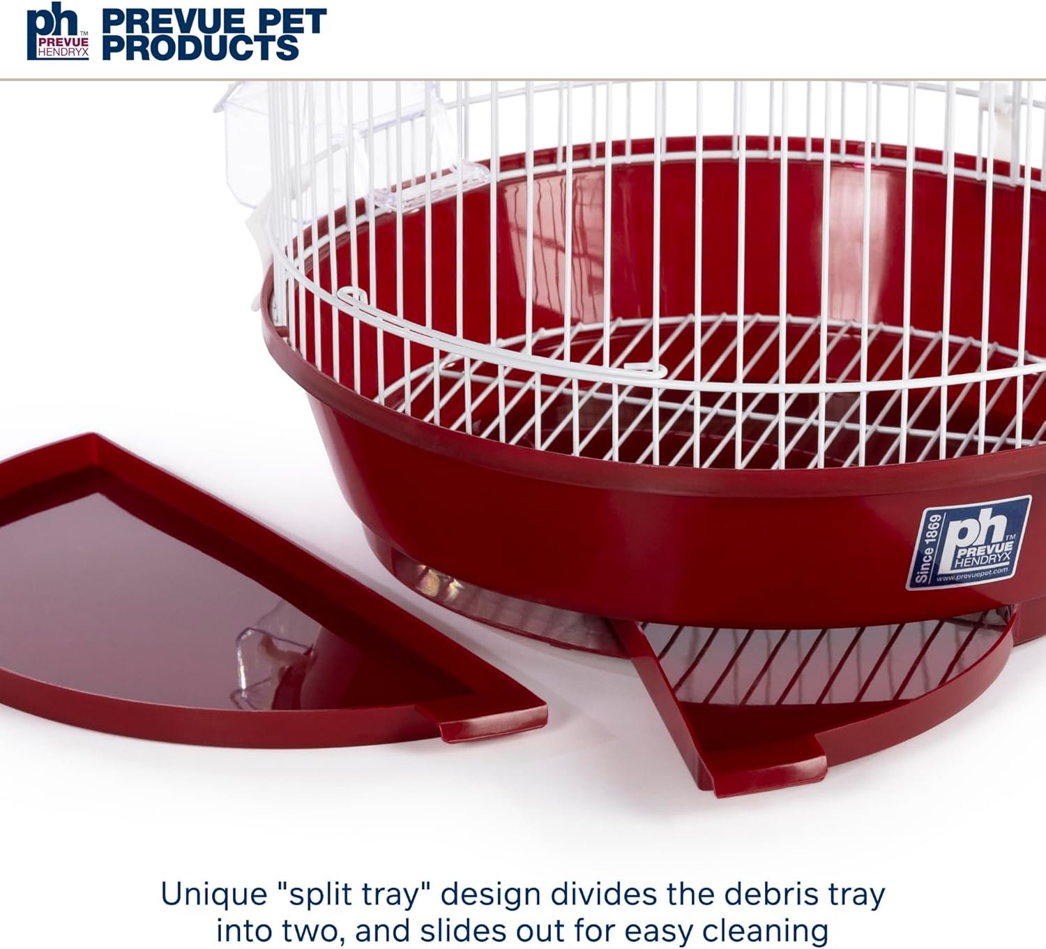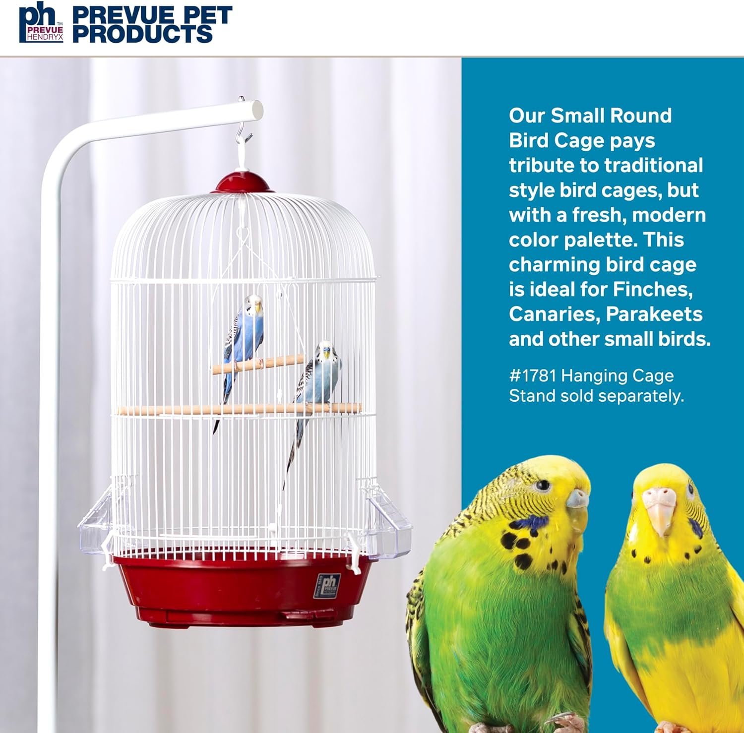 Prevue pet products classic round bird cage in red sp31999r pays tribute to a traditional style of bird cages. In a fresh, modern color palette this charming bird cage is ideal for finches, canaries, parakeets and other small birds. Cage comes complete with two hooded plastic cups, one swing and one wood perch. Owner friendly features include a removable bottom grille and pull-out tray for convenient cleaning. A delightful addition to any area of your home, our classic round bird cage in red is 16 in diameter and measures 26 high to the top of the finial with 3/8 wire spacing.