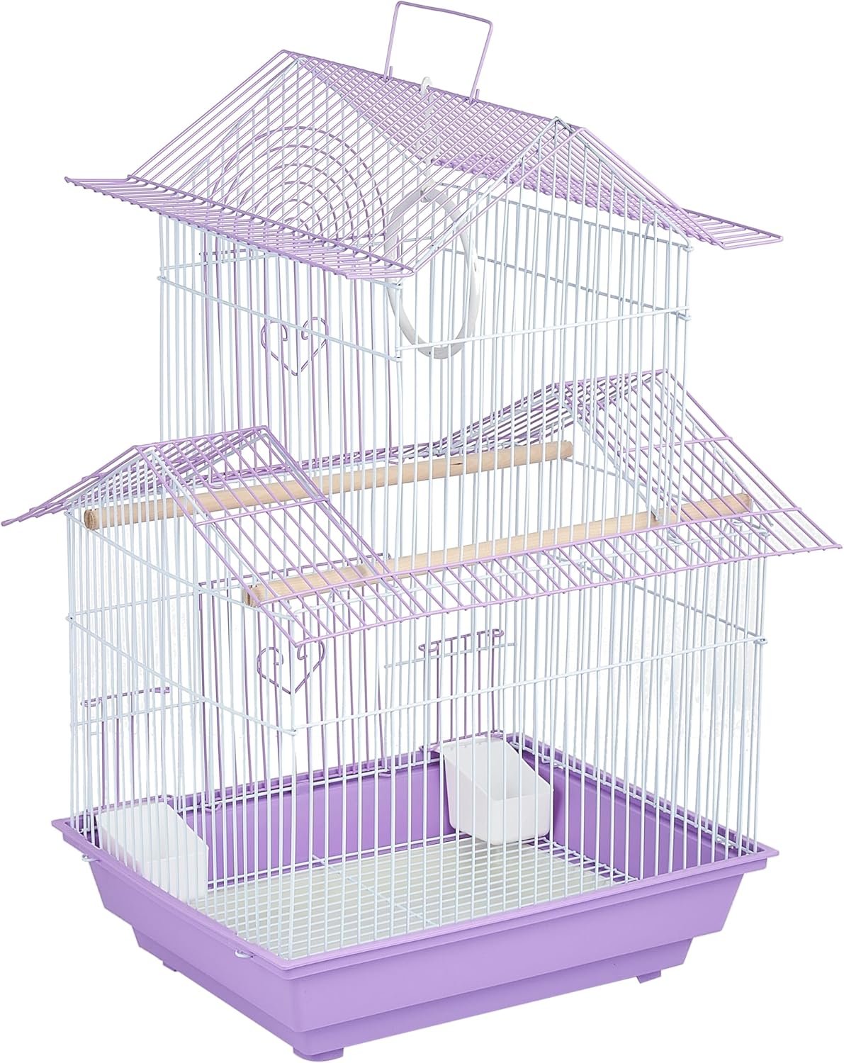Prevue Pet Products Shanghai Parakeet Cage Lilac and White SP1720-3 is designed to house parakeets, canaries and similar sized birds. Featuring a decorative peak style roofline, this bird cage includes two plastic cups plus two perches and a swing. Color coordinated tray is removable for convenient cleaning. Measuring 13 1/2-inch Long, 11-inch Wide, 22-inch High with 7/16-inch wire spacing our Shanghai Parakeet Cage provides plenty of room for your small birds to play.