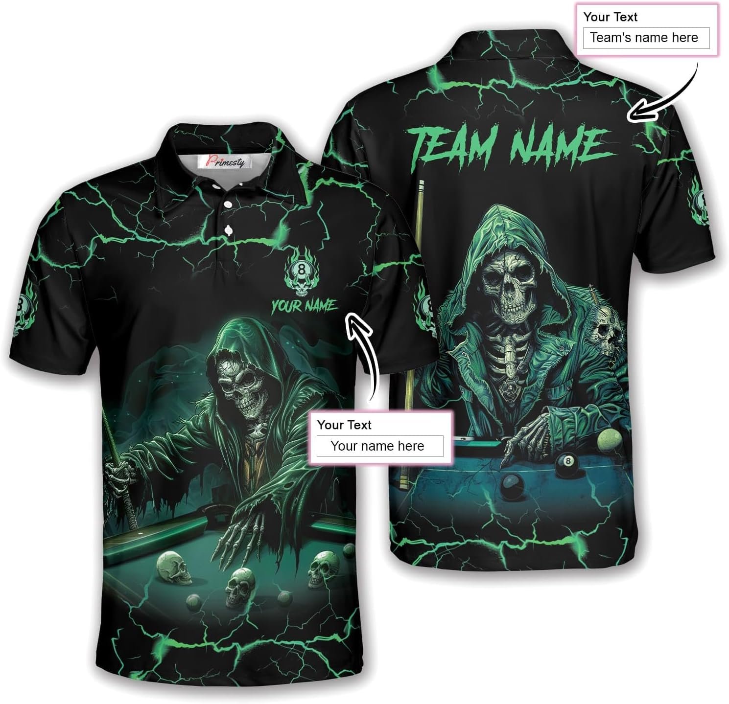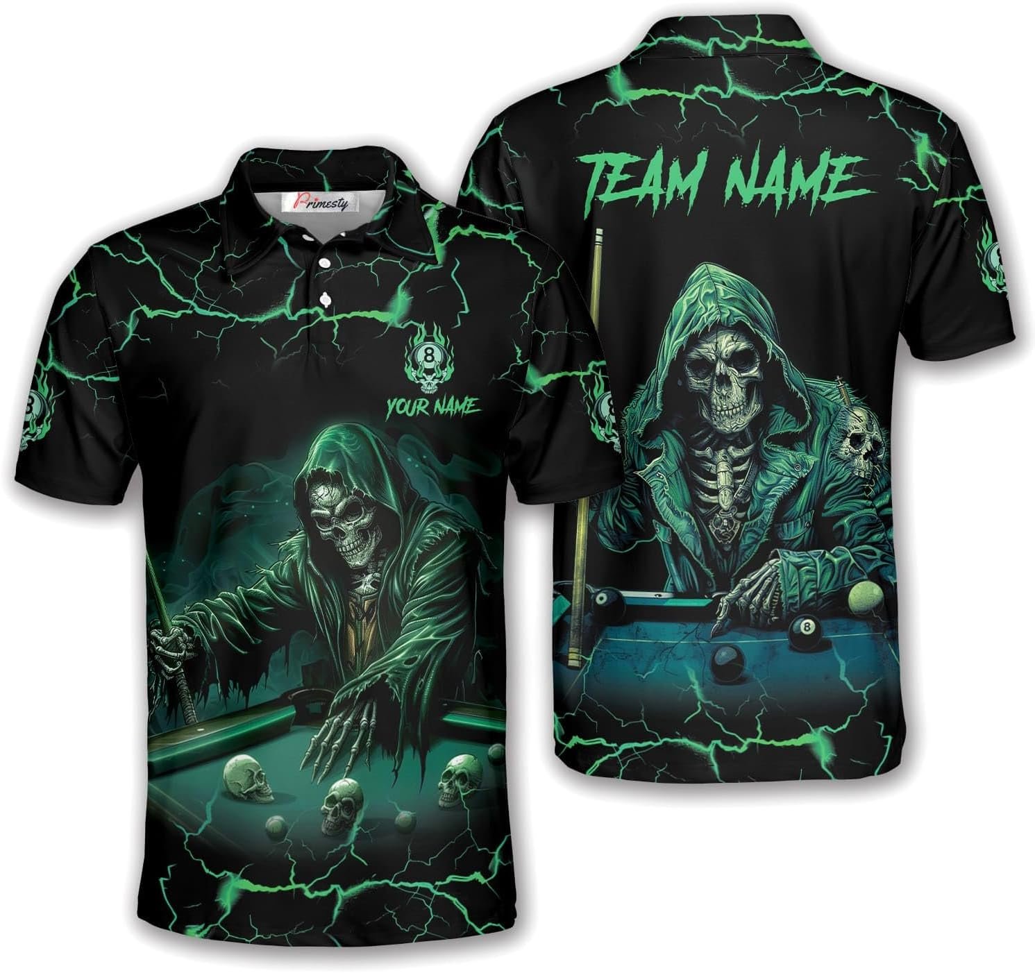 PRIMESTY Custom Billiard Shirts for Men, Personalized Billiard Polo Shirts, Custom Name Billiard Jerseys, Size S-5XL