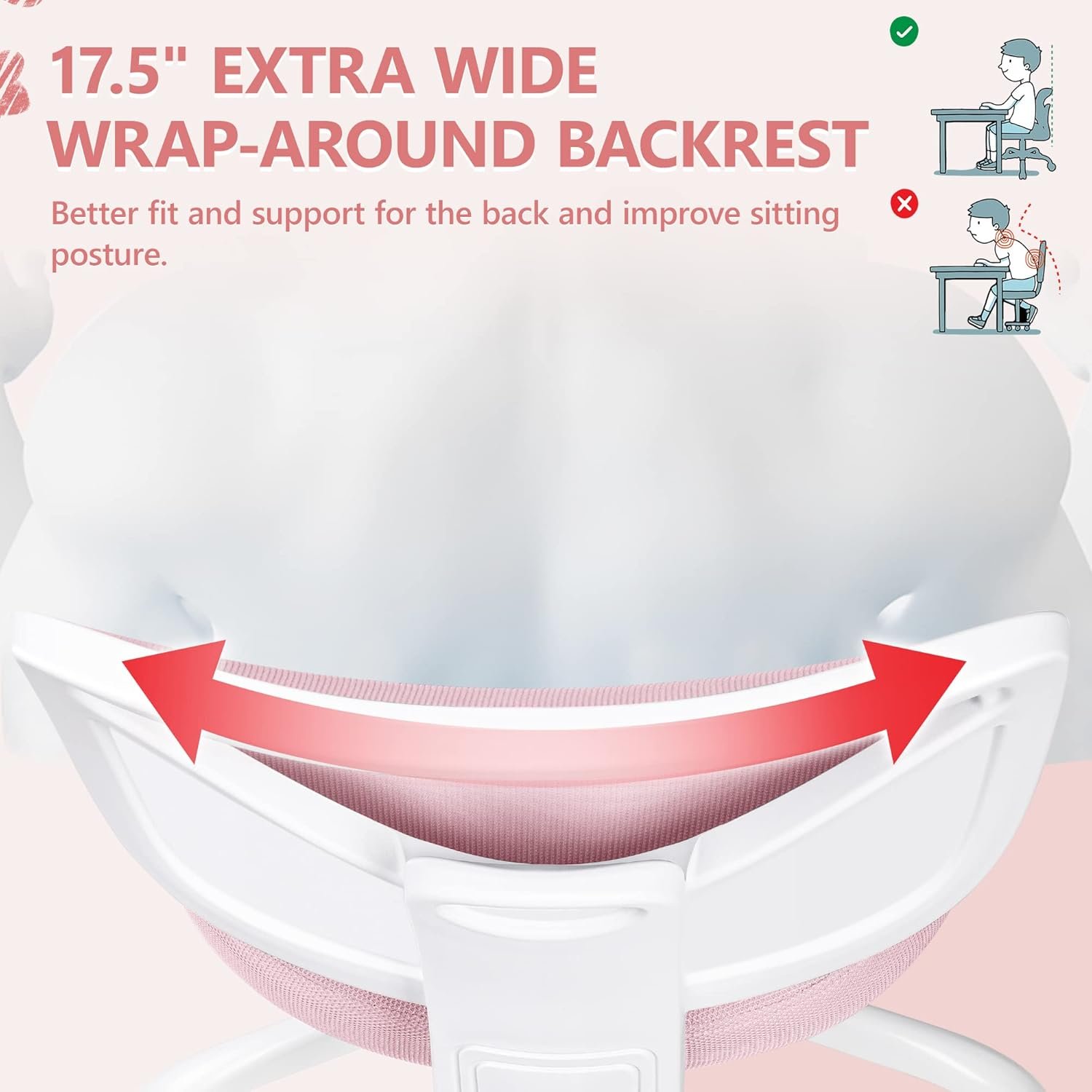 Primy Kids Desk Chair, Pink Study Chair for Boys Girls with Height Adjustable, Swivel Mesh Task Student Chairs for 4-12, Growing Teen Office Chair for Home/School/Office (Pink)