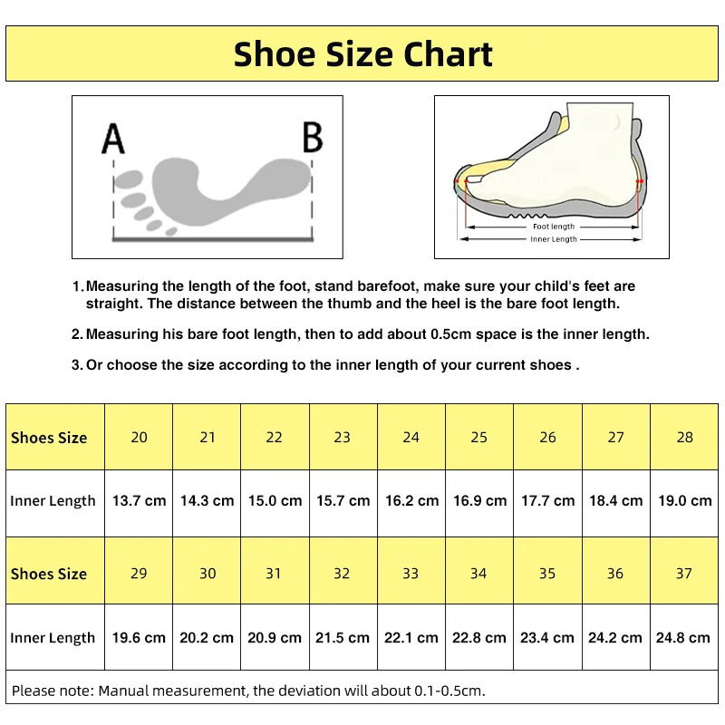 1)Measuring the length of the foot, stand barefoot, make sure your child’s feet are straight. The distance between the thumb and the heel is the bare foot length.