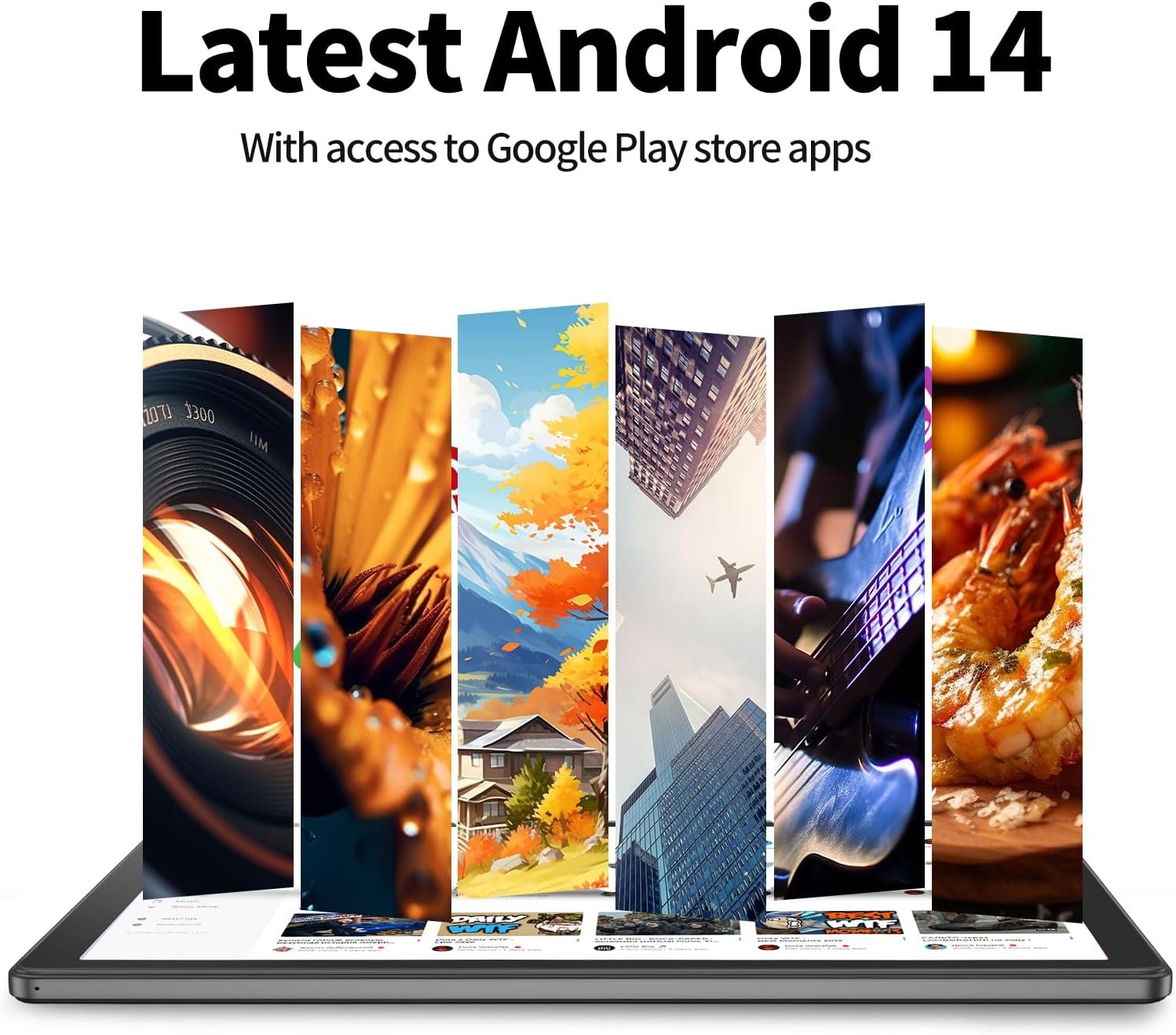 PRITOM Tablets 10 inch, TAB10 Android 14 Tablet, Quad-Core, WiFi, 32 GB, 6000mAh, HD IPS Display, Dual Camera, Bluetooth (Gray)