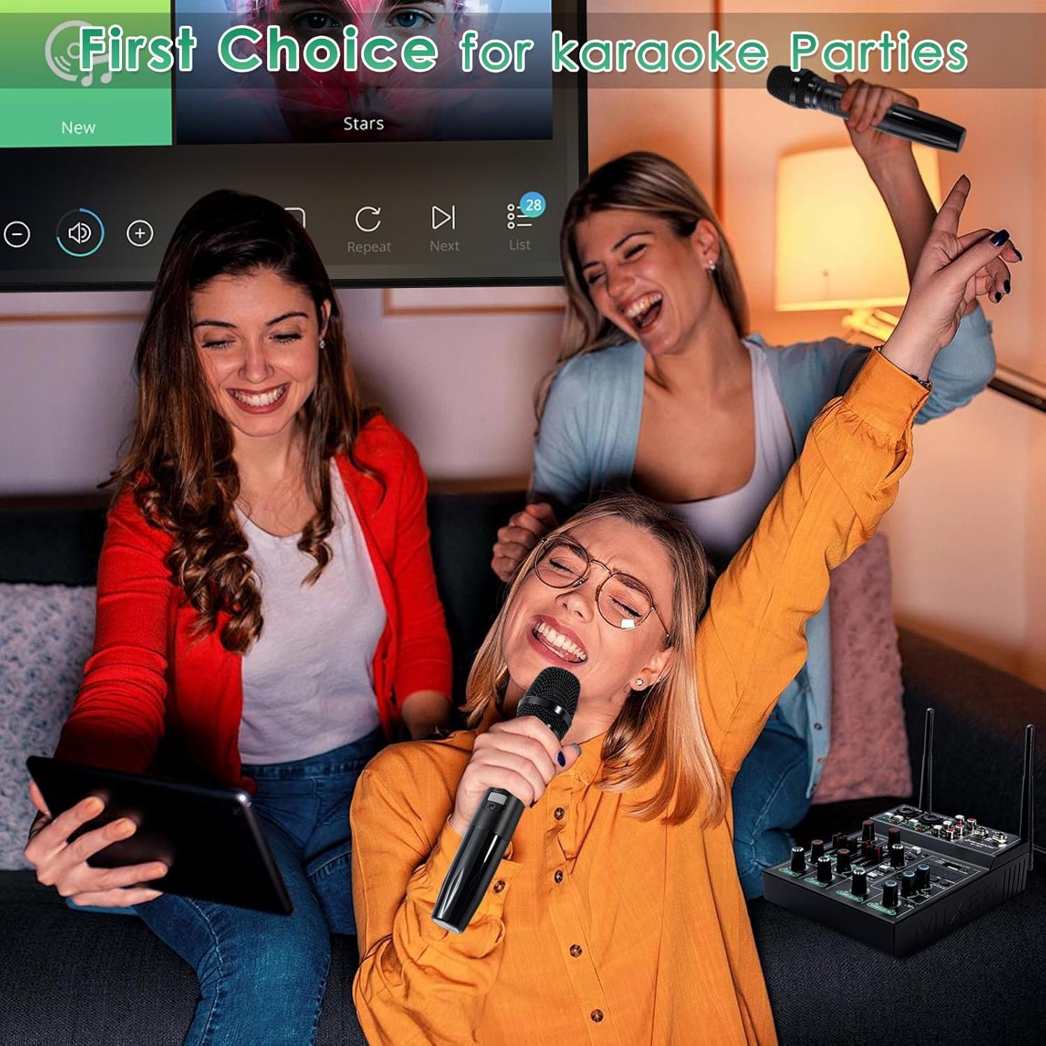 【5-Channel Audio Mixer with 2 Wireless Microphones】 – This 5-channel audio mixer comes with 2 UHF wireless handheld microphones, offering a wide range of audio adjustment features. Each channel can be independently adjusted to ensure the best audio mixing for different sound sources. The wireless reception range is up to 180 feet, providing stable wireless audio transmission, ideal for most entertainment settings.