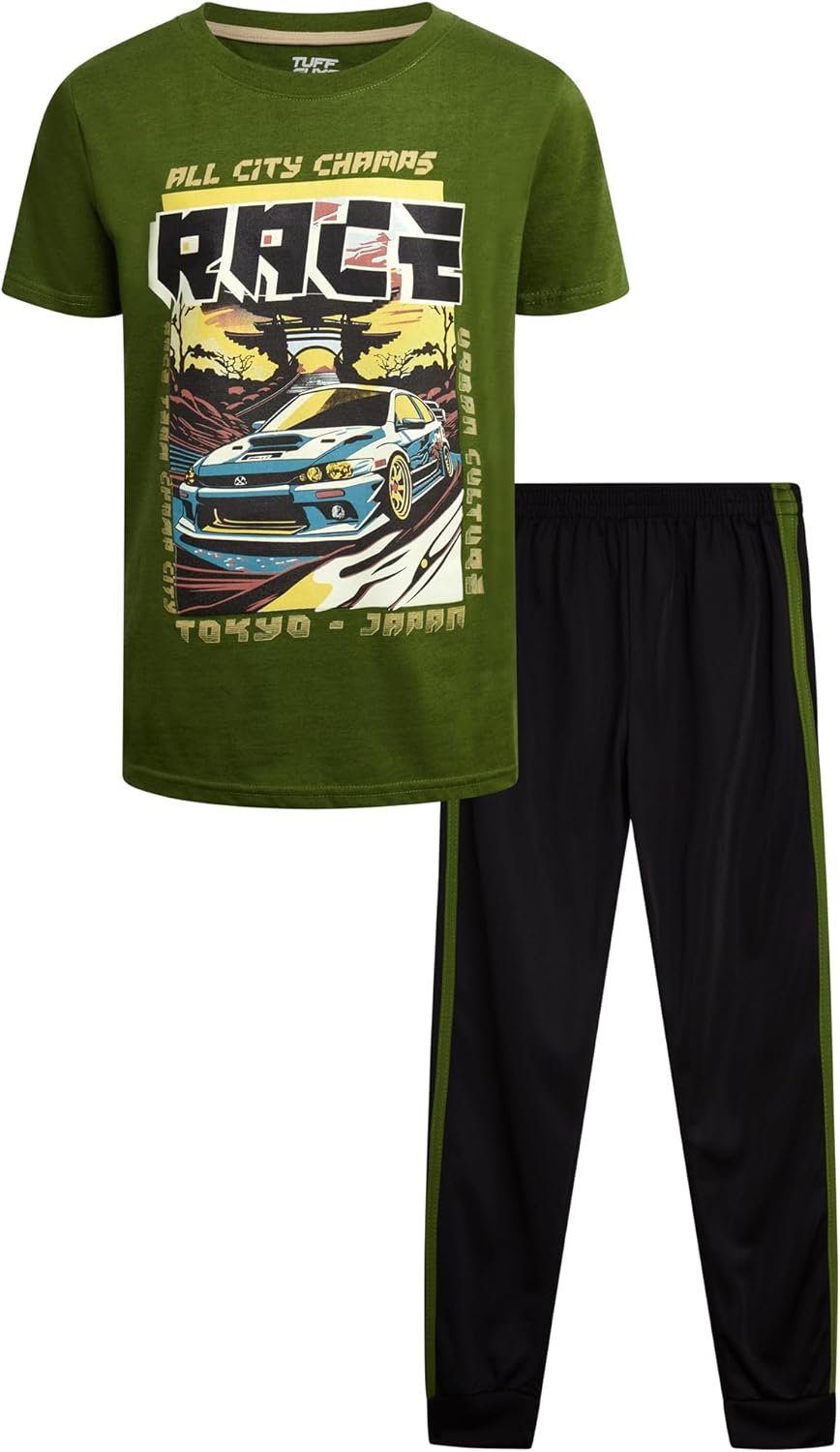 Pro Athlete Boys Pant Set – 2 Piece Tracksuit with Short Sleeve Graphic Tee and Tricot Jogger Sweatpants for Boys (8-16)