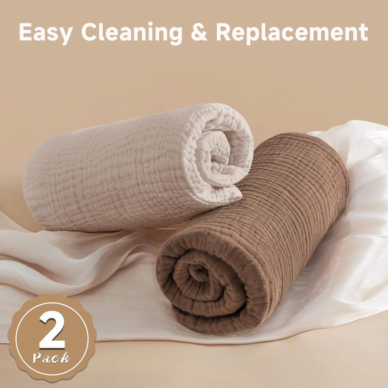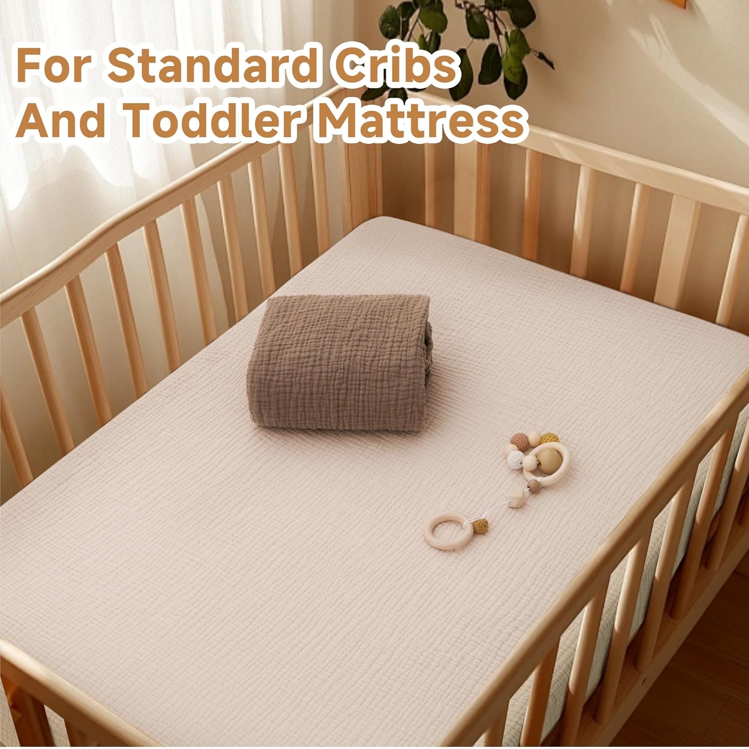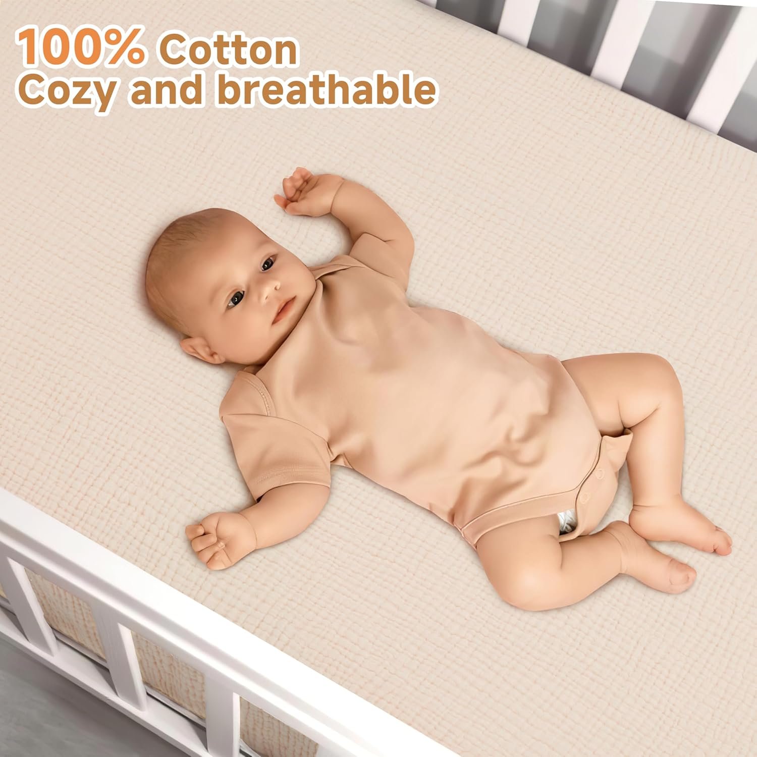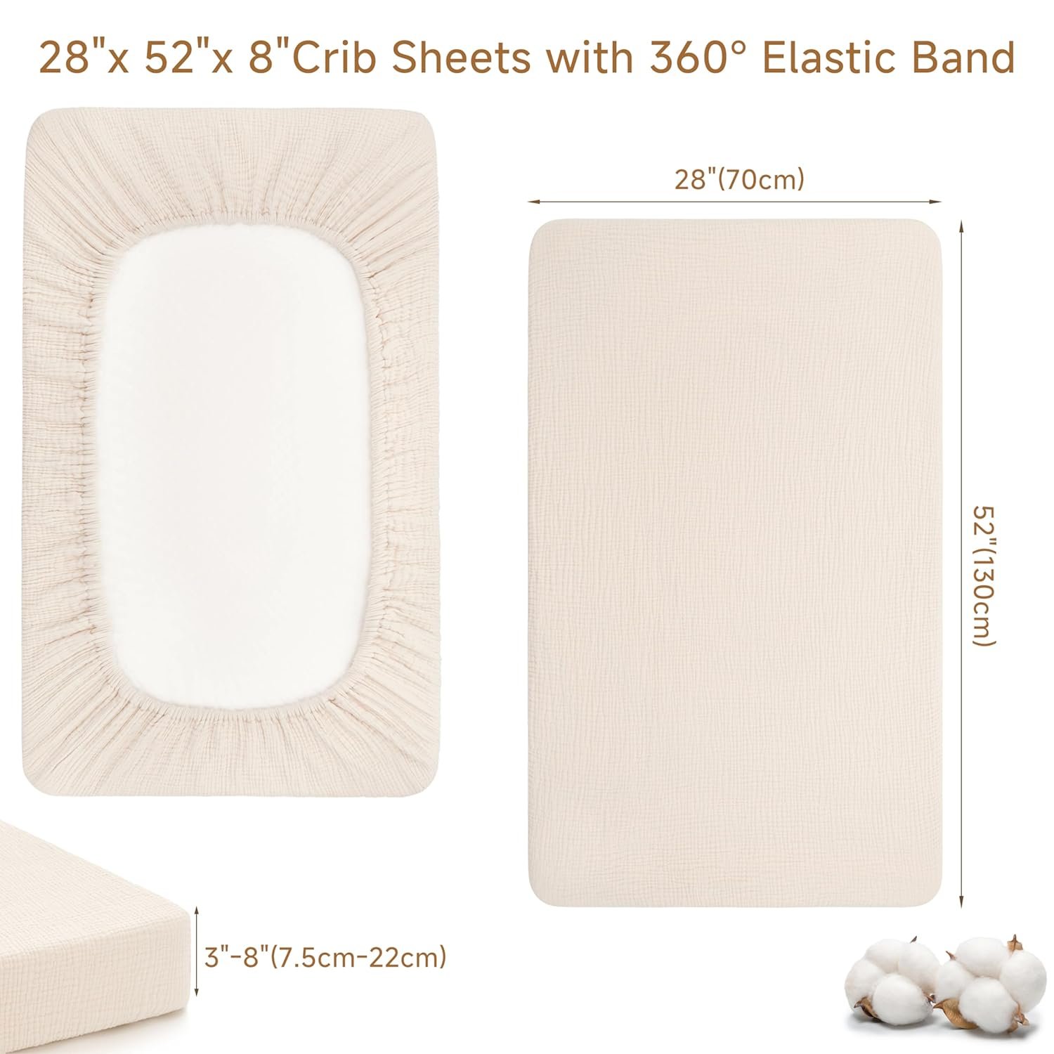Pro Goleem Muslin Crib Sheets, 100% Cotton Crib Sheets for Boy Girl, 2 Pack Breathable Soft Neutral Baby Bed Sheets Set, Fits Standard Crib Mattress & Toddler Mattress 52″x28″, (Brown&Beige)