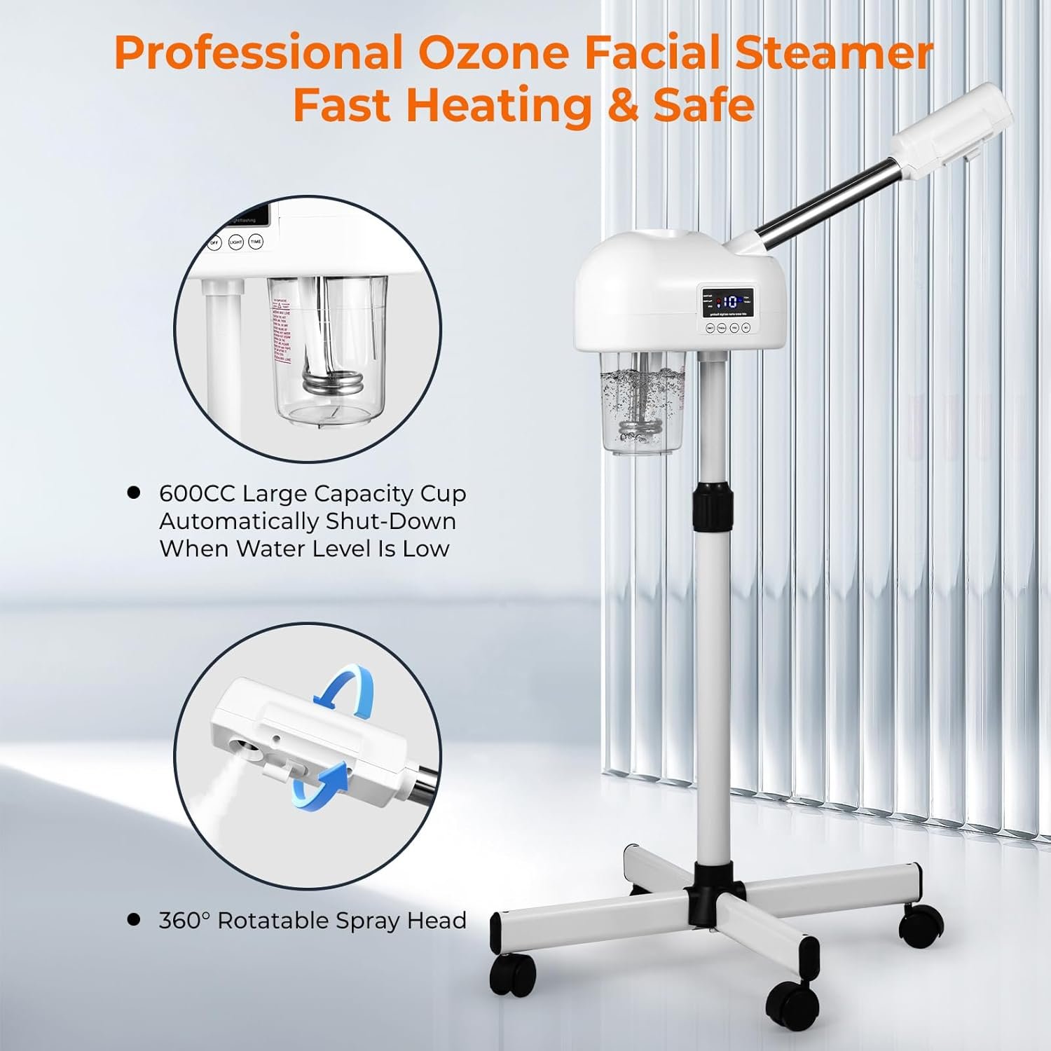 Professional Facial Steamer for Estheticians, Hot Mist & Timer Function, Vaporizador Facial Professional Steamer On Wheels for Home Use & Spa Salon Skin Cleasning