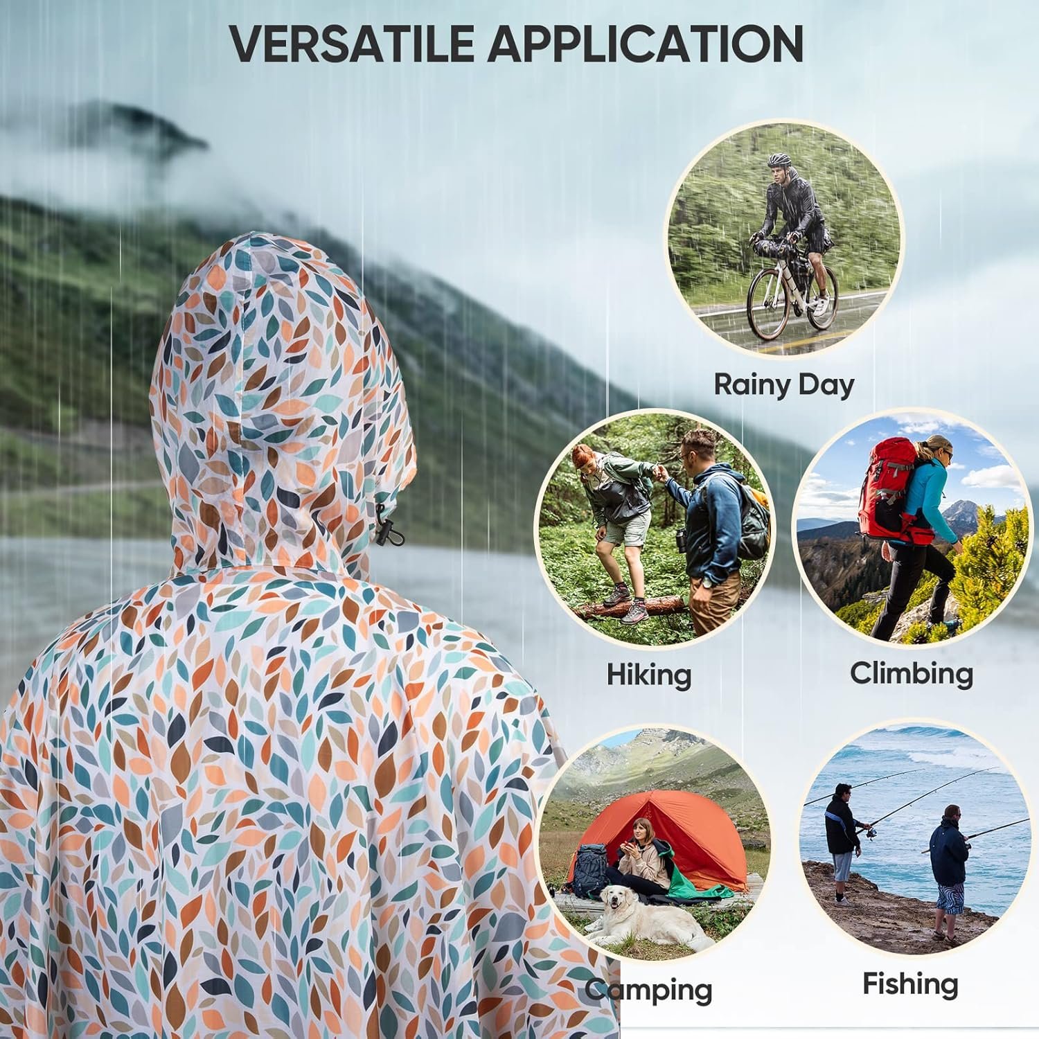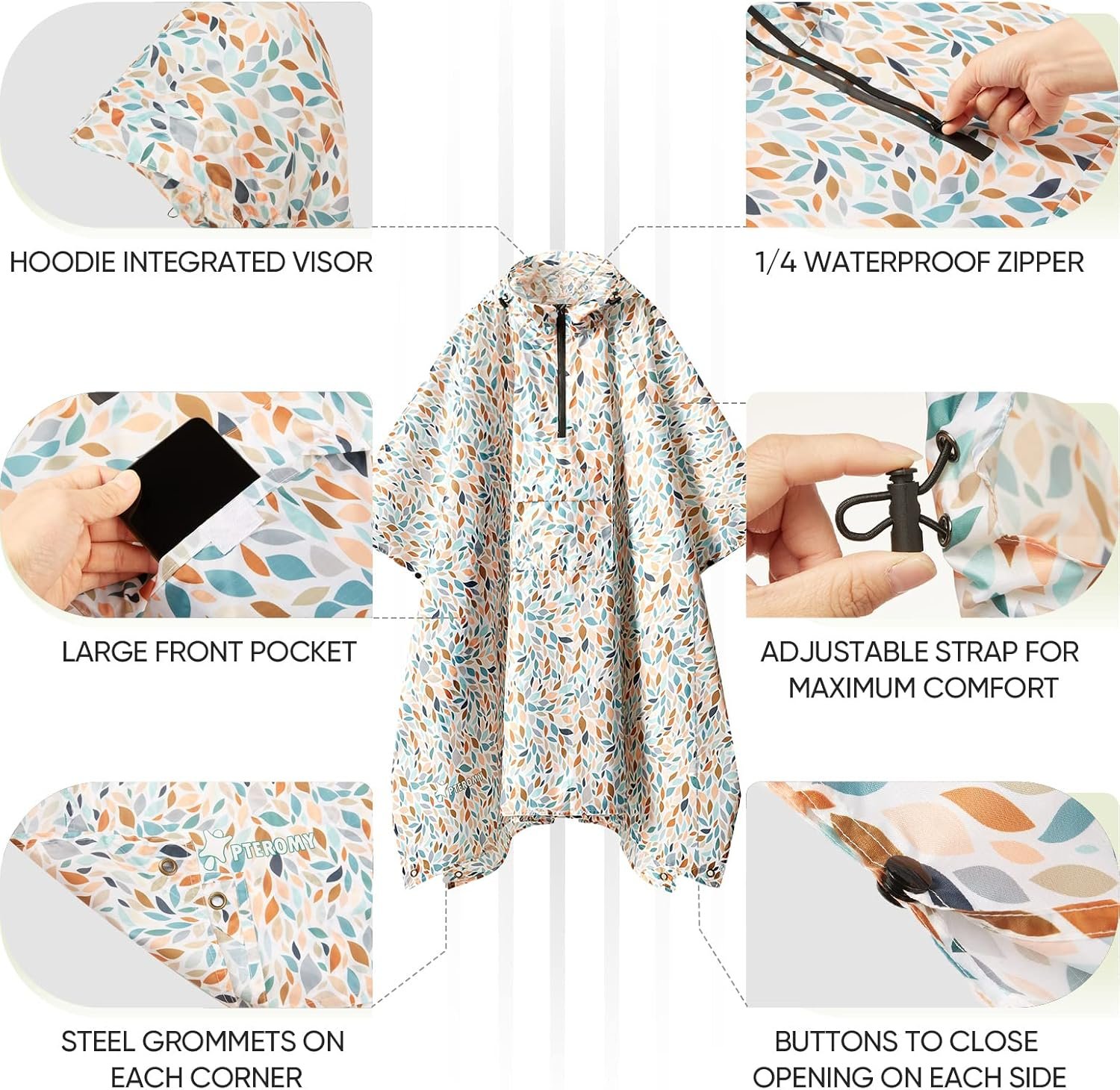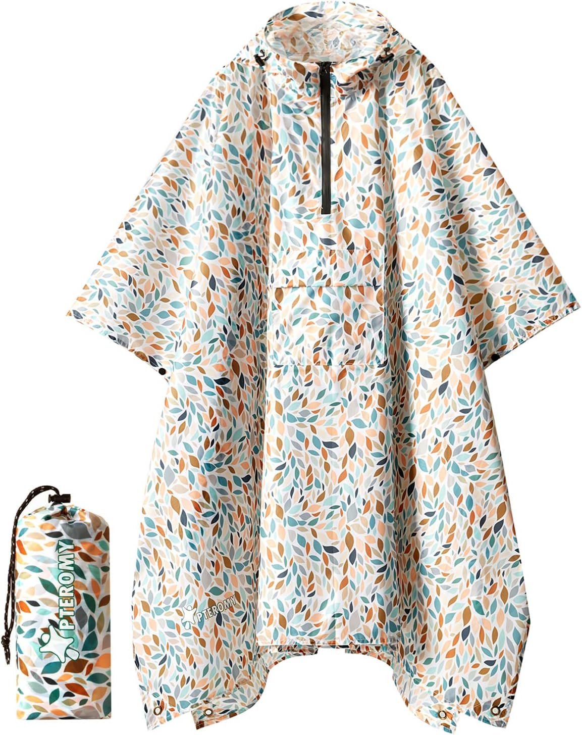 PTEROMY Hooded Rain Poncho for Adult with Pocket, Waterproof Lightweight Unisex Raincoat for Hiking Camping Emergency