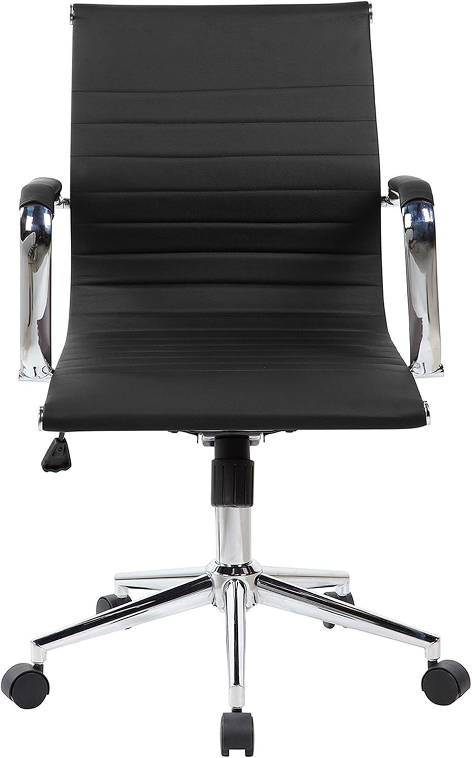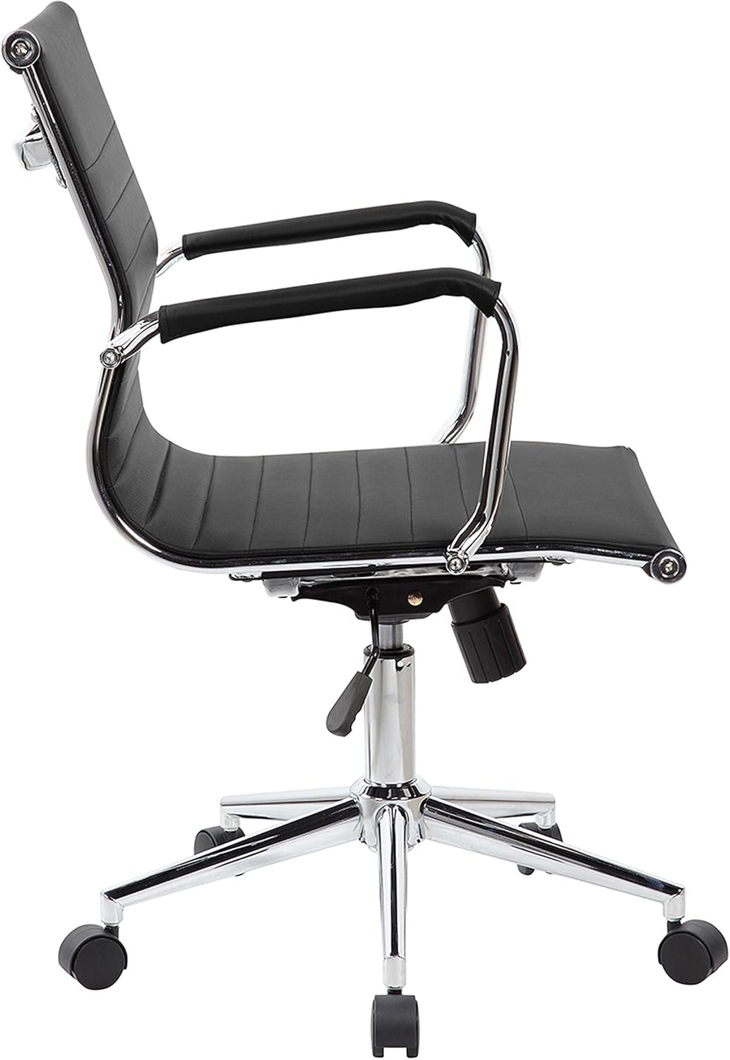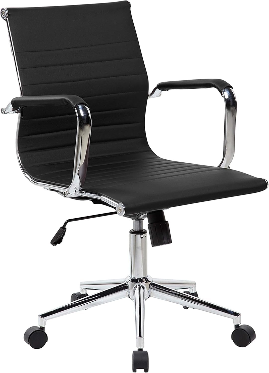 PU Leather Office Chair with Padded Armrests, Mid-Back Desk Chair with Chrome Base, Black