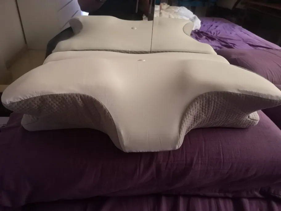 Our pillow has 2 different contour heights on either side, so you can choose whichever works better for your sleep posture. Butterfly design shape gives armrests, no more arms numbness. It offers enough room for your shoulders and makes good nasal airflow for back, side & stomach sleepers. The hole inside was designed to cradle your head for optimal support & reduce the pressure of the skull. It allows for a comfortable yet supportive night’s sleep.